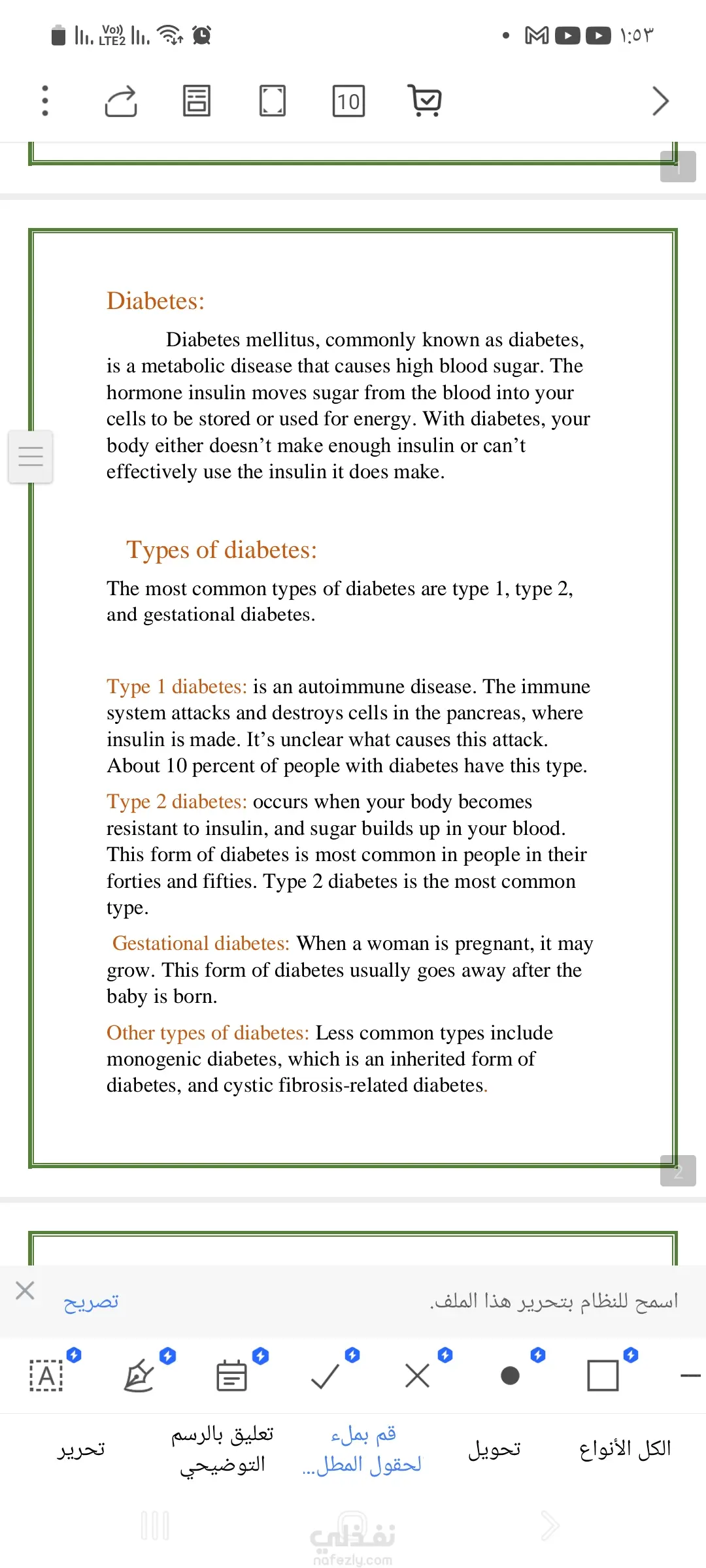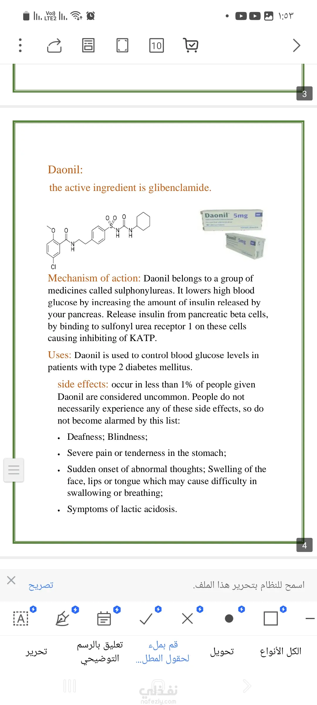 محتوى بحث علمى باللغة الانجليزية عن مرض السكر و بعض الأدوية لعلاجه