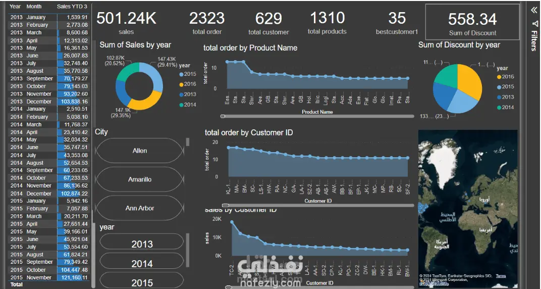 تصميم وتطوير لوحة تحكم تفاعلية شاملة لتحليل أداء المبيعات والعملاء والمنتجات على مدار سنوات متعددة ($2013-2016$)، بهدف توفير رؤى سريعة ومُتخذة للإجراءات لمساعدة الإدارة في اتخاذ القرارات الاستراتيجية.