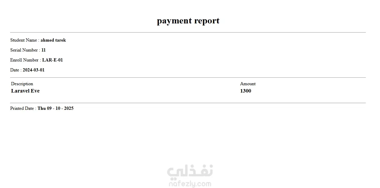 تسجيل وتتبع المدفوعات الخاصة بكل طالب.