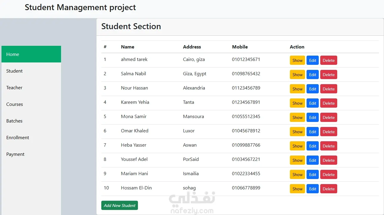 إمكانية إضافة، تعديل، حذف، أو عرض بيانات الطلاب بسهولة.