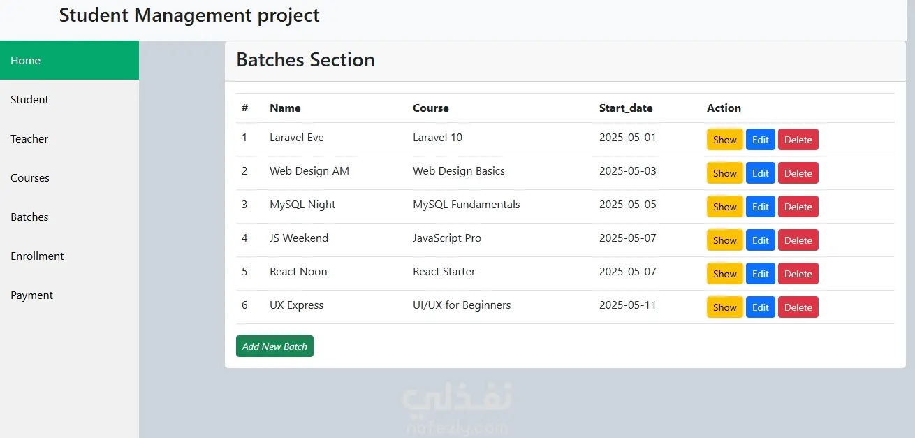 تنظيم الطلاب حسب الدُفعات وتحديد ارتباطهم بالكورسات والمعلمين.