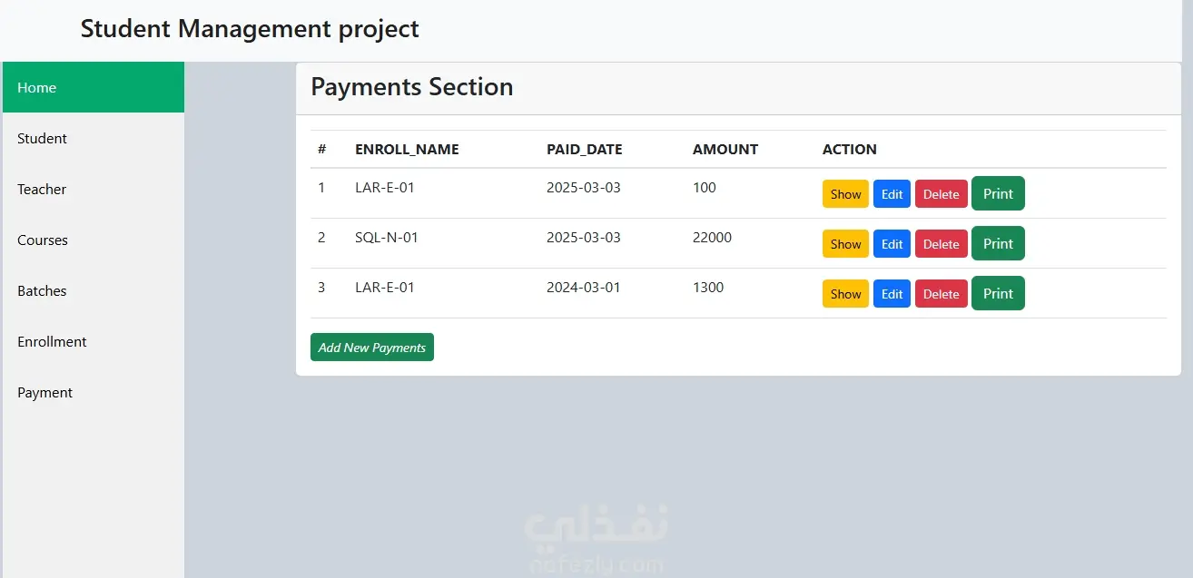Student Management System هو مشروع ويب متكامل لتسهيل إدارة بيانات الطلاب والمعلمين والدورات الدراسية.