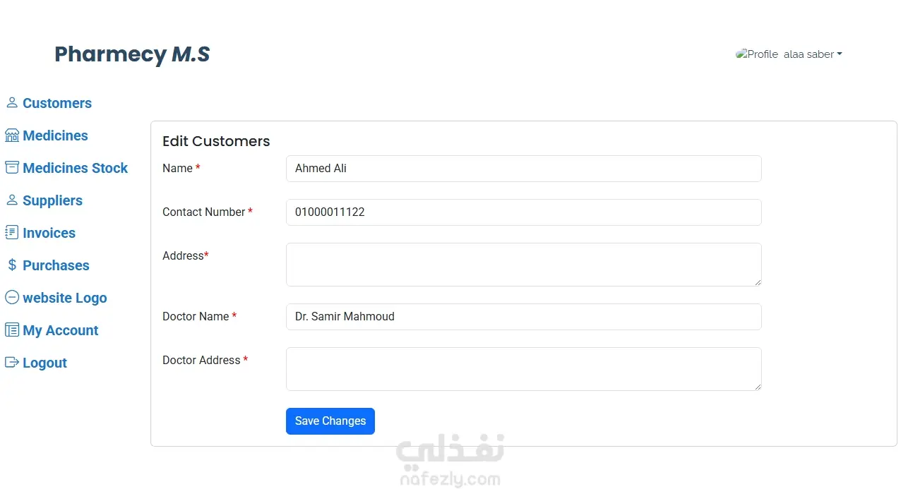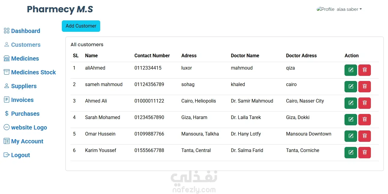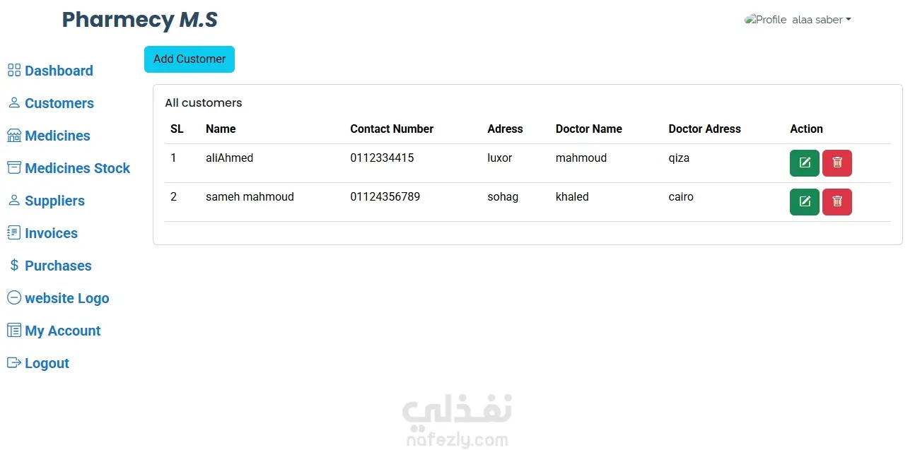 يساعد المشروع على إدارة العملاء، الموردين، الفواتير، والمخزون الطبي بطريقة منظمة وسهلة الاستخدام.