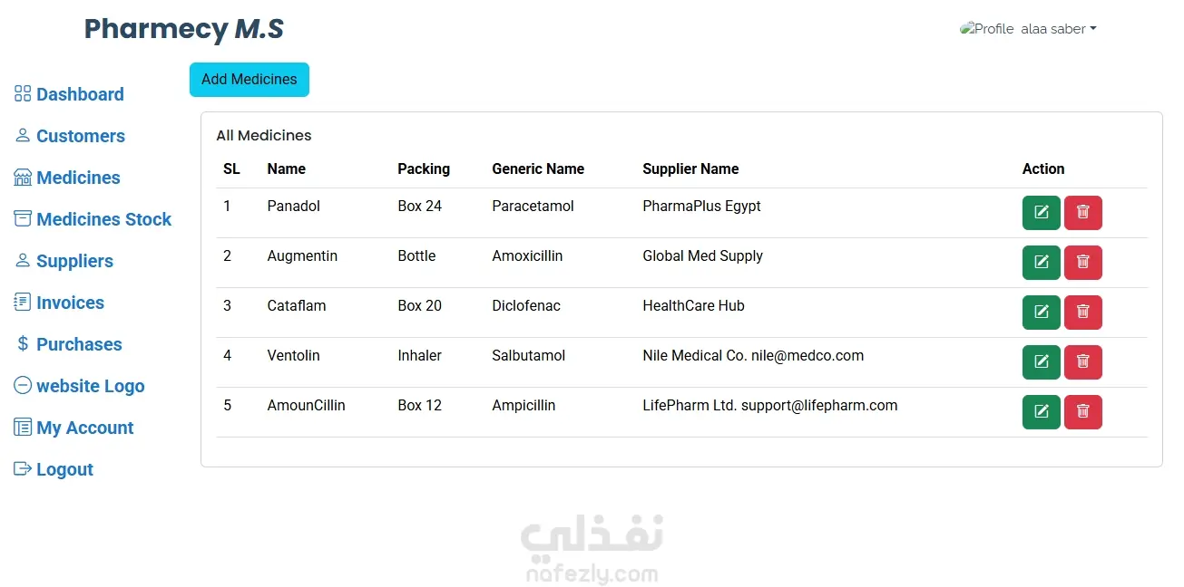 Pharmacy Management System هو تطبيق ويب متكامل لتسهيل إدارة عمليات الصيدلية اليومية.
