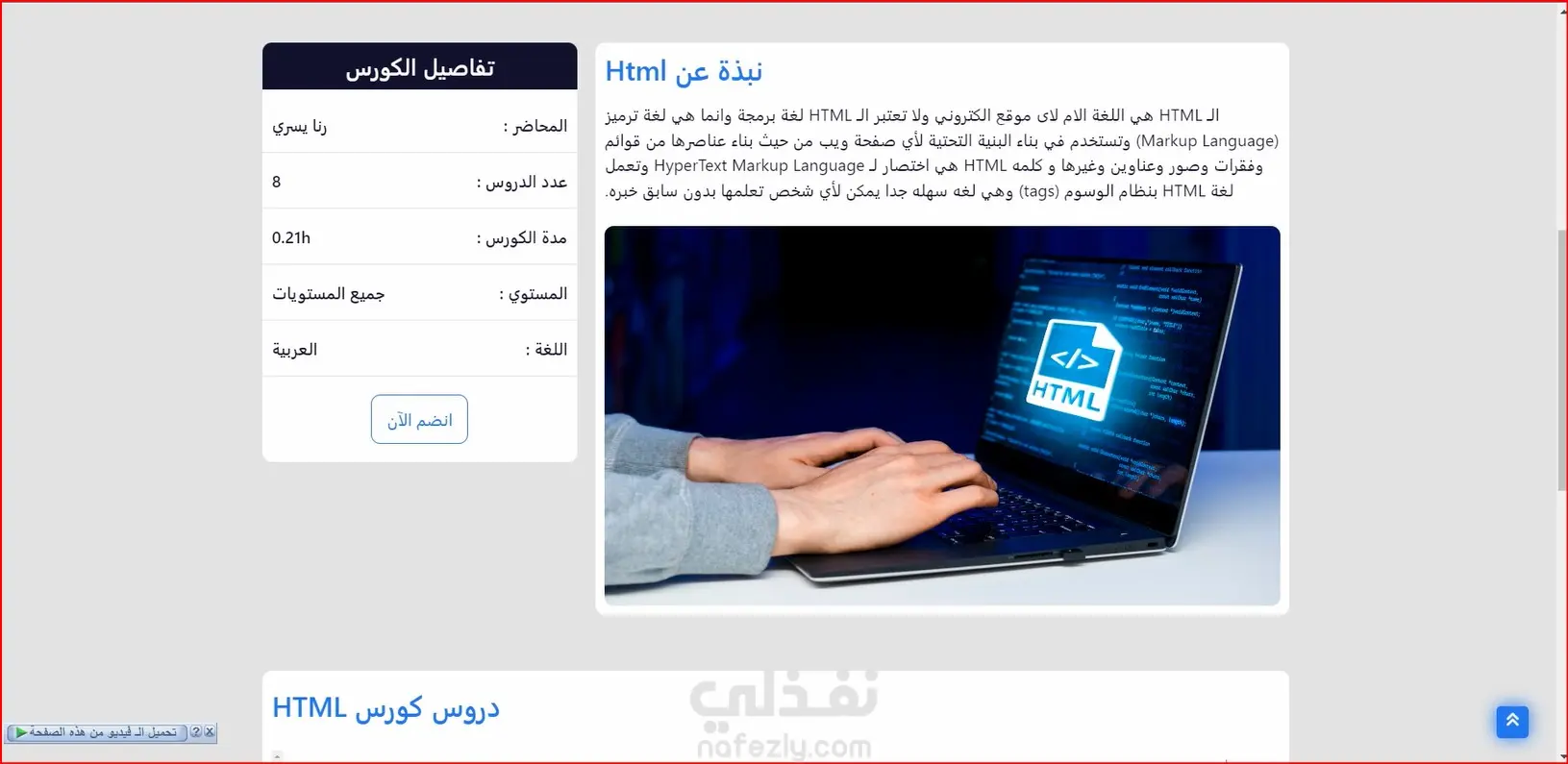 منصة ويب تعليمية تشمل واجهة للطلاب والمبتدئين