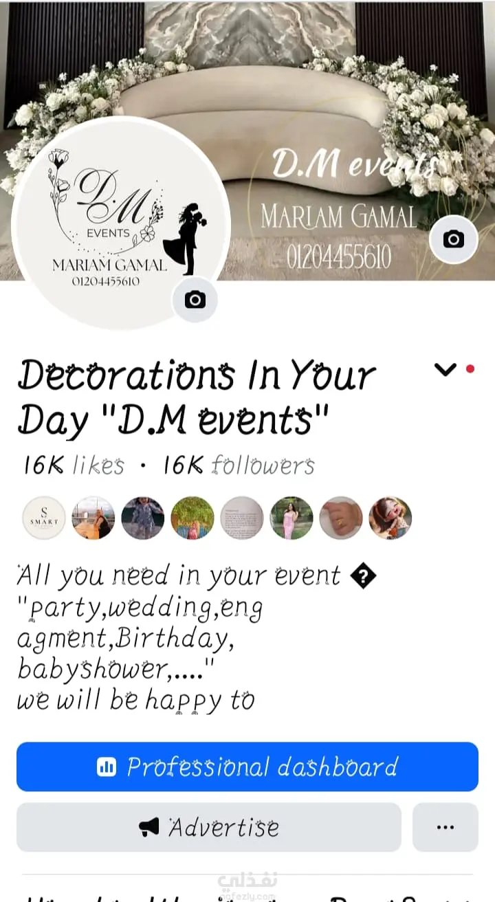 ادارة صفحة مختصة في الديكورات والمناسبات