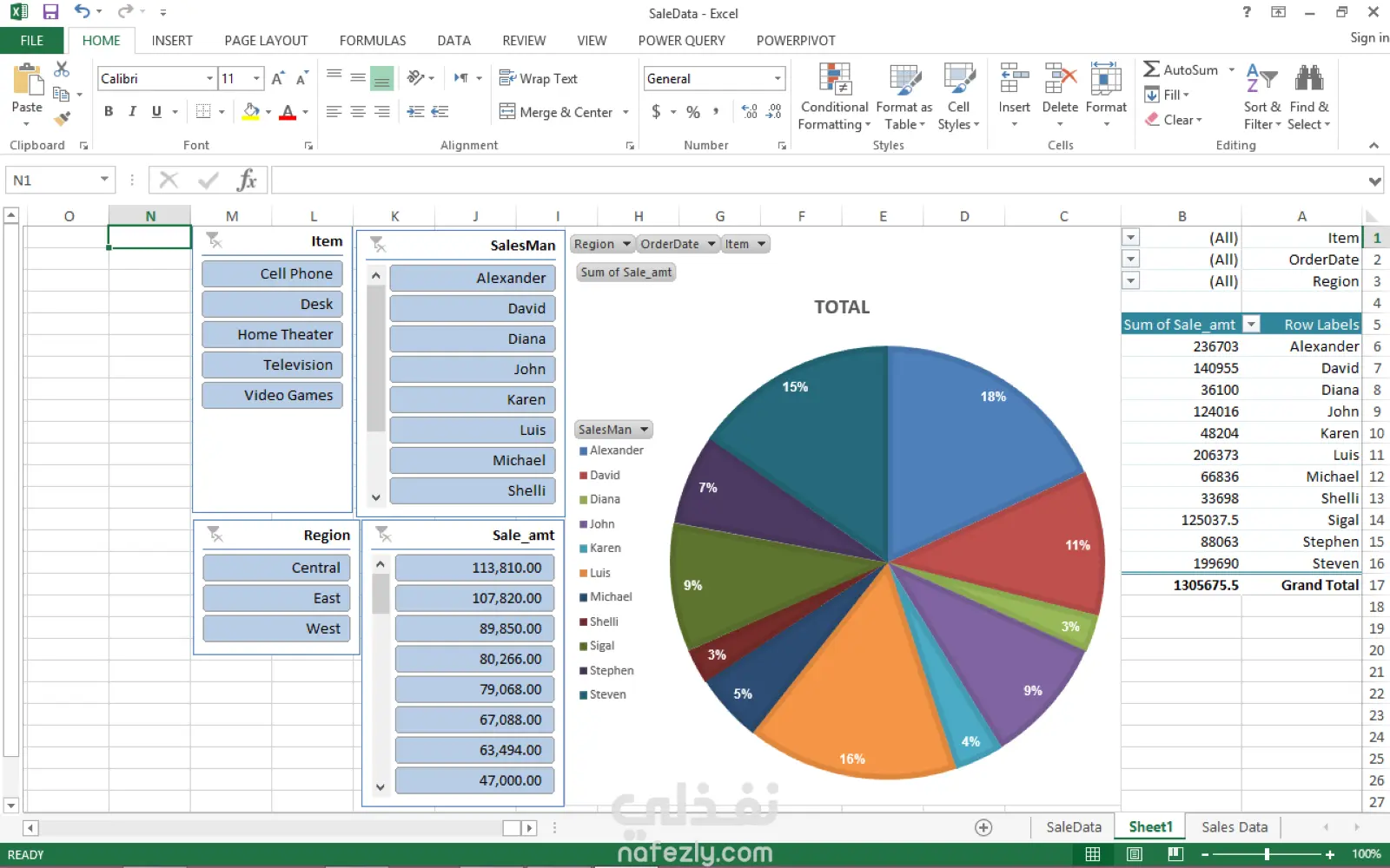 تحليل بيانات المبيعات على مستوى المناطق البيعيةو مندبوبين البيع و المنتجات وقيمة المبيعات