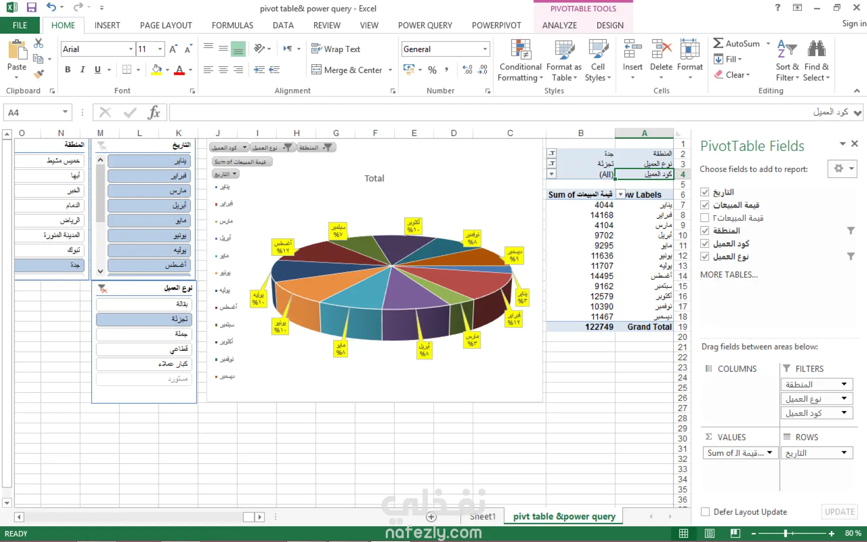 عمل تحليل للبيانات بيفوت تابل و باور كويرى