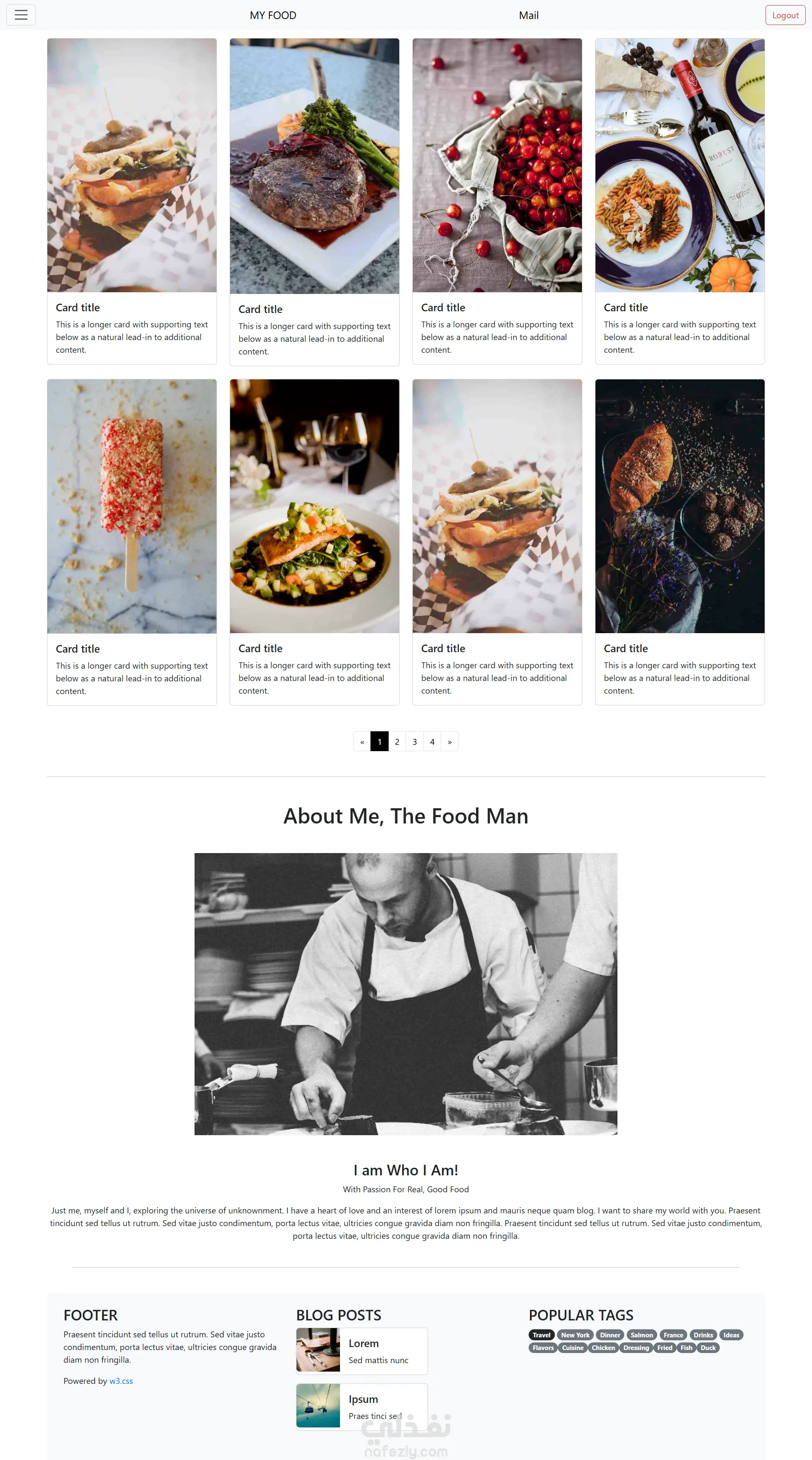 تصميم صفحة مدونة طعام متجاوبة باستخدام Bootstrap