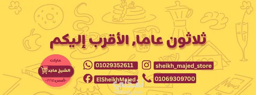 طلب العميل مني تصميم لوجو وcover لمحل بقالة خاص به مع التركيز على اظهار بيانات المحل و الخبرة ال 30 عاما