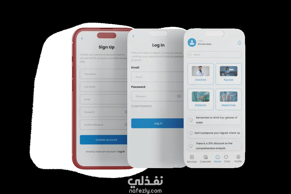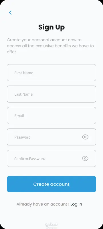 تنفيذ اسكرينات تسجيل الدخول وانشاء حساب جديد لتطبيقات والمواقع