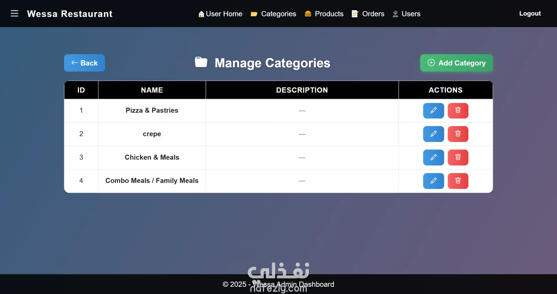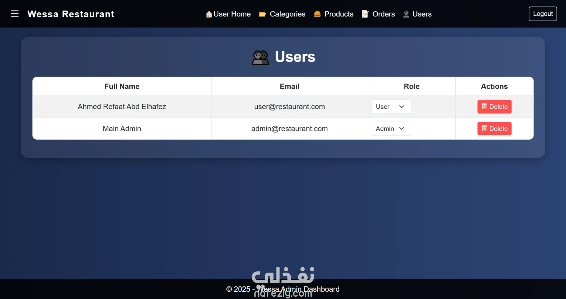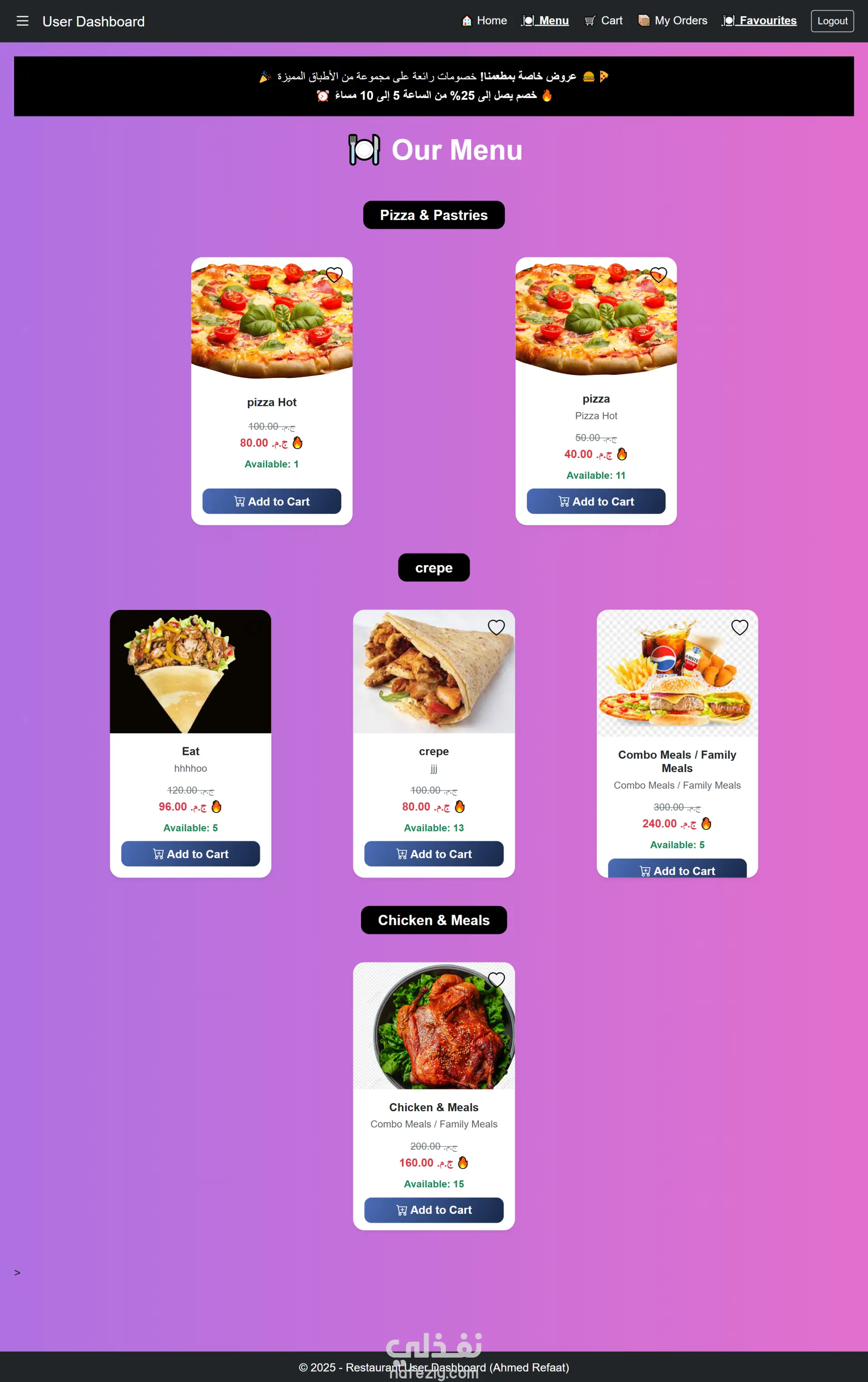 In this project, I implemented a complete Restuarant system with the following features: 🛒 Product management (CRUD operations) 👤 Authentication & Authorization (Login / Register / Logout) 🔑 Admin Dashboard to manage the website 📊 SQL Database for reliable data storage&&EF Core LINQ 🎨 Bootstrap for a responsive and modern UI 🧩 SOLID Principles applied for clean, maintainable, and scalable code This project was a great opportunity to practice full-stack development Using Controller and View, combining backend logic with C# and clean frontend design, while following best practices in software engineering