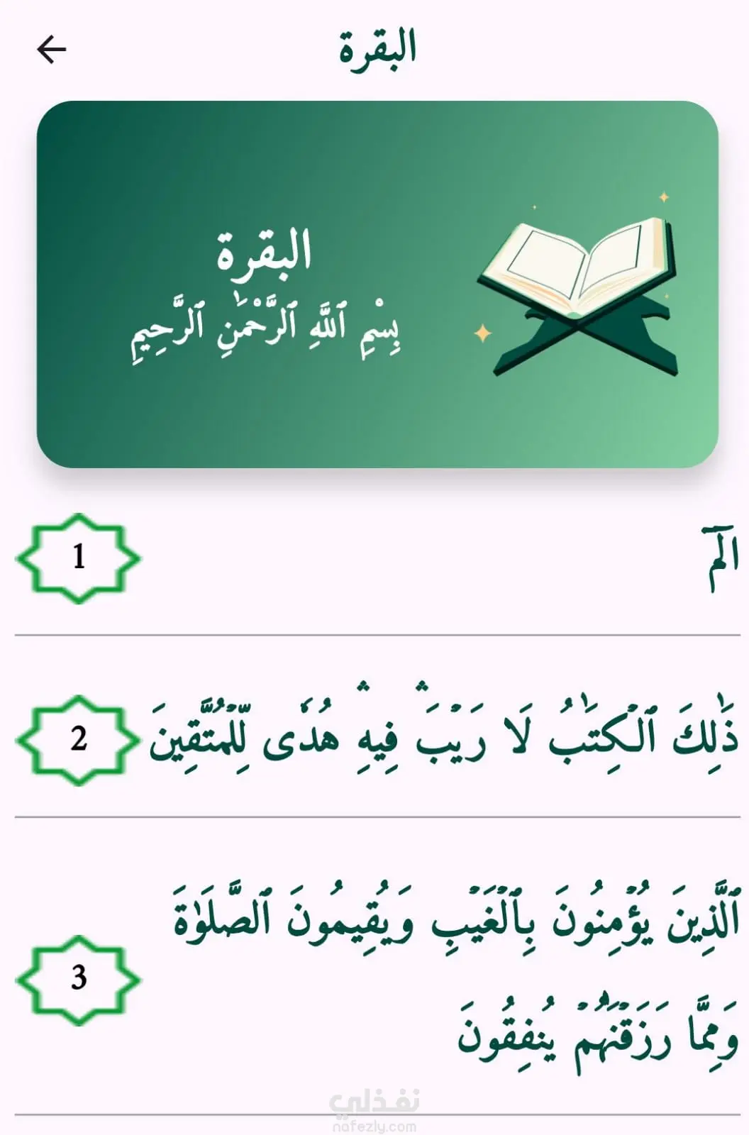 تطبيق إسلامي بسيط وسهل الاستخدام. بيقدّم القرآن الكريم كامل والأذكار مع بحث سريع. كمان فيه مواقيت الصلاة حسب المدينة، وتتبع آخر موضع قراءة تلقائي، وسبحة إلكترونية تفاعلية. مبني بفلاتر، ومعتمد على Dio للتعامل مع الـ API، وBLoC لإدارة الحالات، وSharedPreferences للتخزين، مع استخدام JSON Assets لأداء أسرع.