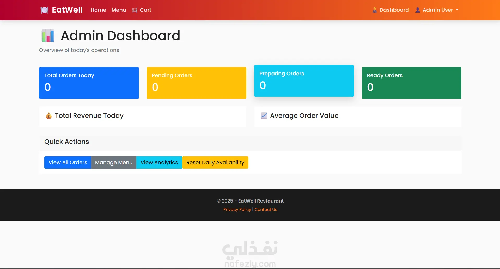 ️ نظام إدارة المطاعم (Restaurant Management System) مشروع تطبيق ويب متكامل لإدارة عمليات المطاعم، تم تطويره باستخدام ASP.NET Core MVC وفقًا لمبادئ الهندسة النظيفة (Clean Architecture) لضمان المرونة وسهولة التطوير والتوسّع. المميزات الرئيسية: إدارة كاملة لقائمة الطعام مع التصنيفات والصور نظام تتبّع الطلبات في الوقت الفعلي (من “قيد الانتظار” إلى “جاهز” ثم “تم التسليم”) نظام خصومات ذكي (خصم 20% في ساعات الذروة، و10% للطلبات الكبيرة) صلاحيات مستخدمين متعددة (مدير / عميل) عربة تسوّق مع إدارة الجلسات تتبع المخزون اليومي (يتم إخفاء الصنف تلقائيًا بعد 50 طلبًا) نظام مواعيد العمل التلقائي (Business Hours Middleware) لوحة تحكم تحليلية لعرض المبيعات والإحصائيات ️ التقنيات المستخدمة: ASP.NET Core 7 MVC Entity Framework Core SQL Server Bootstrap 5 ASP.NET Core Identity Clean Architecture منطق الأعمال (Business Logic): تسعير ديناميكي مع خصومات تلقائية إدارة سير عمل الطلبات (Workflow) حساب زمن التحضير تلقائيًا نظام الضرائب وتكلفة التوصيل الآلية لوحة تحكم تفاعلية تعرض الإحصائيات لحظيًا يبرهن هذا المشروع على قدرتي في تصميم وتطوير تطبيقات ويب احترافية قابلة للتوسع وسهلة الصيانة، تجمع بين الأداء العالي والمنطق التجاري الواقعي، لتغطي جميع مراحل العمل من تصفح العميل إلى إدارة المطبخ وتحليل المبيعات — حل متكامل لإدارة المطاعم من البداية إلى النهاية.