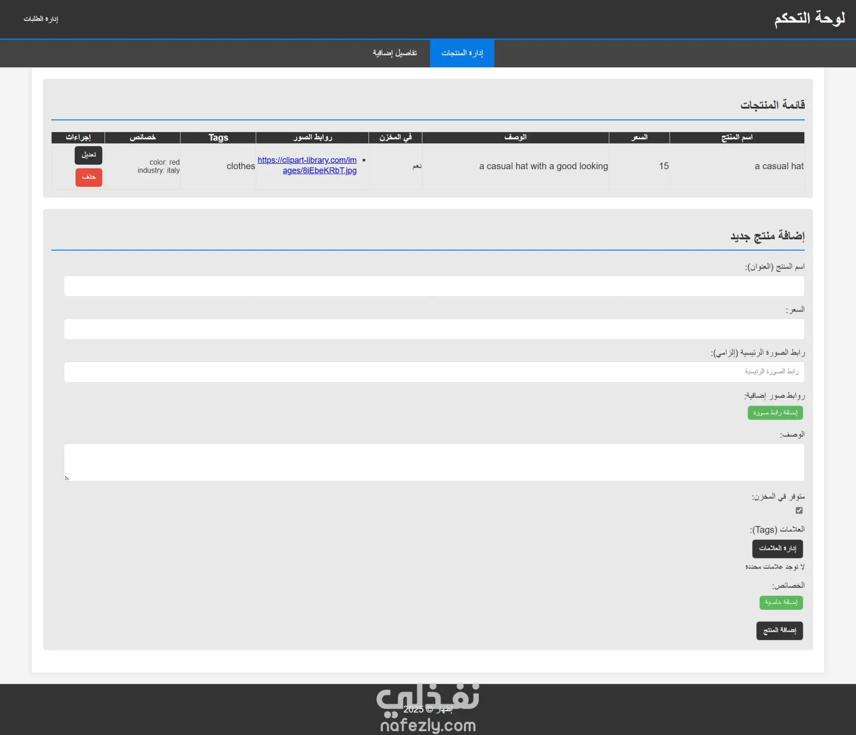 قسم إدارة المنتجات: تعديل البيانات والصور، تحديث المخزون، وإضافة منتجات جديدة.