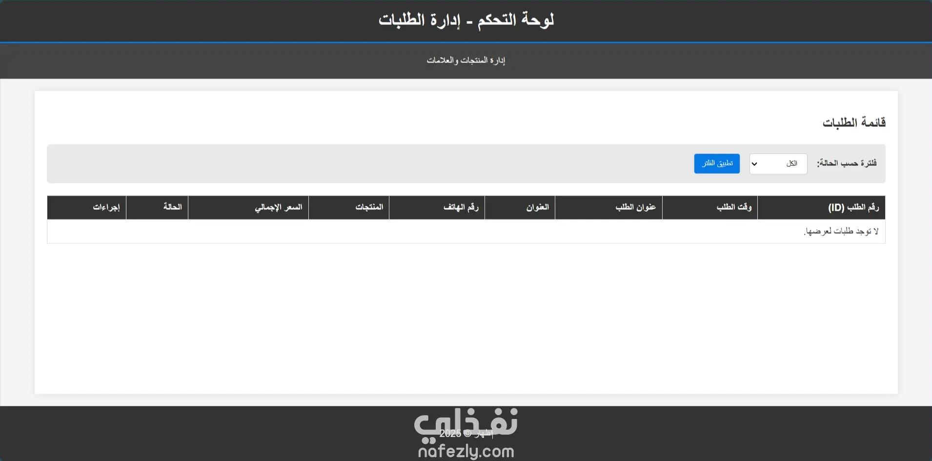 قسم إدارة الطلبات: وصول الطلبات المرسلة من التطبيق إلى نموذج خاص داخل الداشبورد، مزود بنظام أرشفة سريع وبحث فوري ليساعد فريق المبيعات في إدارة الطلبات والرد عليها.