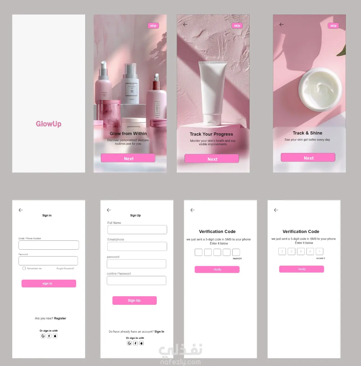 تصميم صفحات المصادقة الخاصة بالتطبيق، والتي تشمل صفحات تسجيل الدخول، وإنشاء الحساب، واستعادة كلمة المرور. ركزت في التصميم على سهولة الاستخدام، وتناسق الألوان مع هوية العلامة، وتجربة مستخدم سلسة وبسيطة تساعد المستخدم على الدخول إلى التطبيق بسهولة وأمان