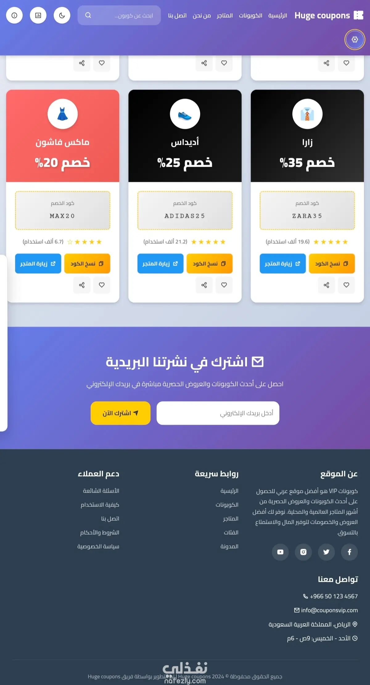 - نظام Grid متقدم لعرض الكوبونات بشكل منظم ومتوازن