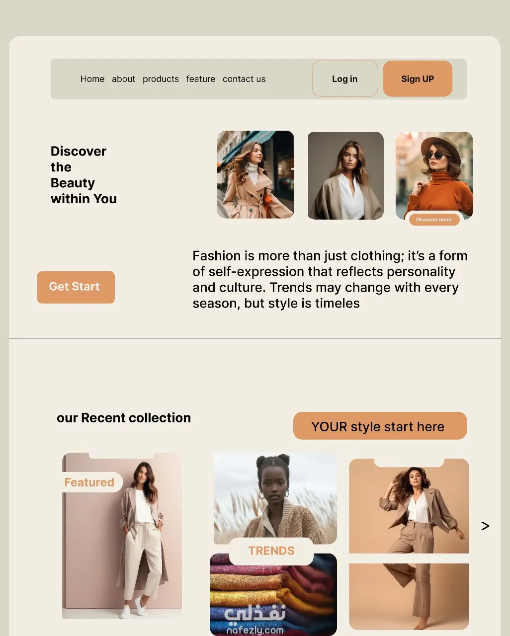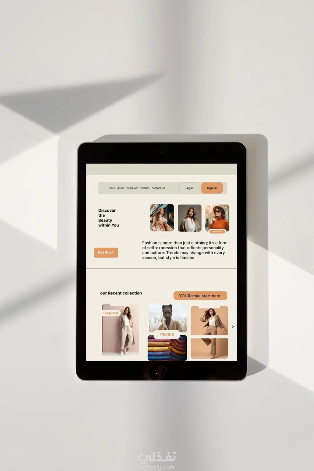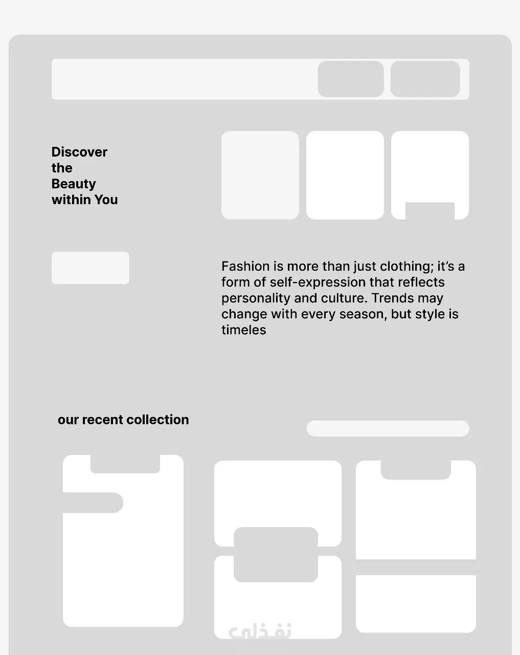 تصميم Wireframe وصفحة هبوط (Landing Page) لمتجر إلكتروني مختص ببيع عصرية حرصت في التصميم على إبراز الهوية العصرية للماركة، مع واجهة مستخدم جذّابة وسهلة التصفّح تعكس روح الموضة الشبابية.