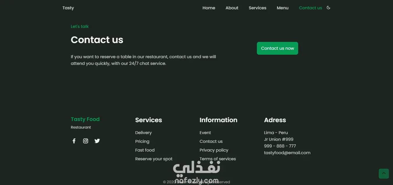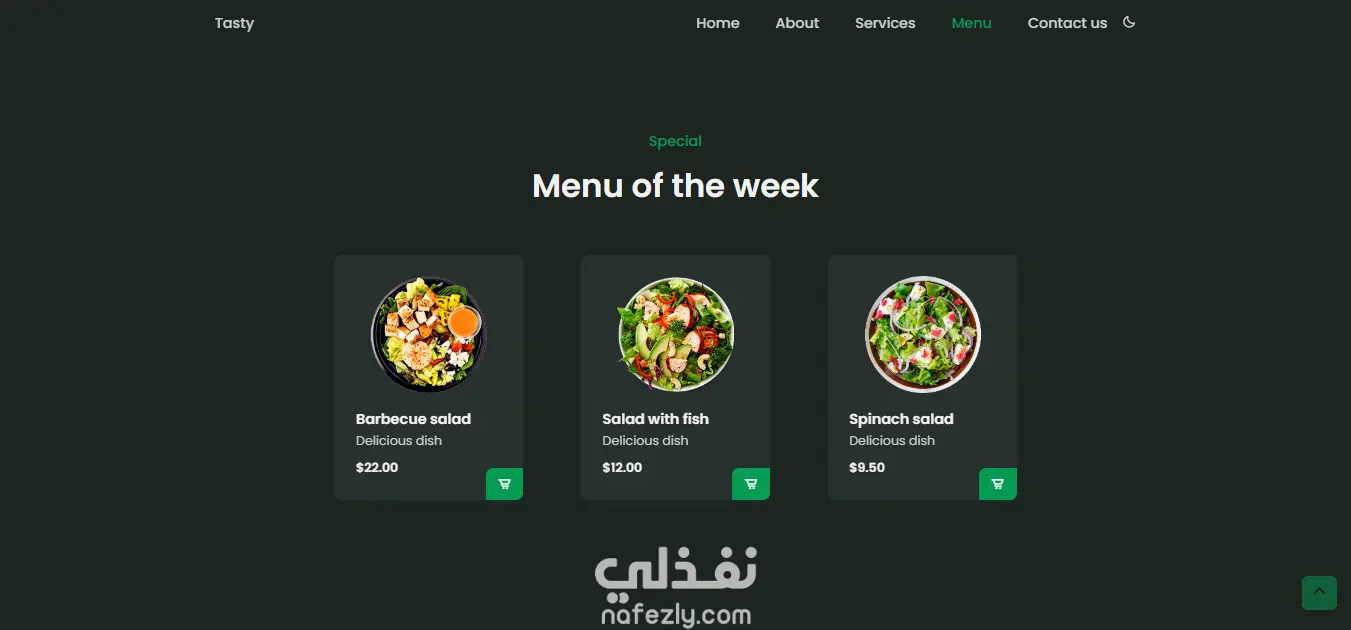 قمت بتصميم وتطوير موقع ويب تفاعلي خاص website food باستخدام HTML، CSS، وJavaScript.
