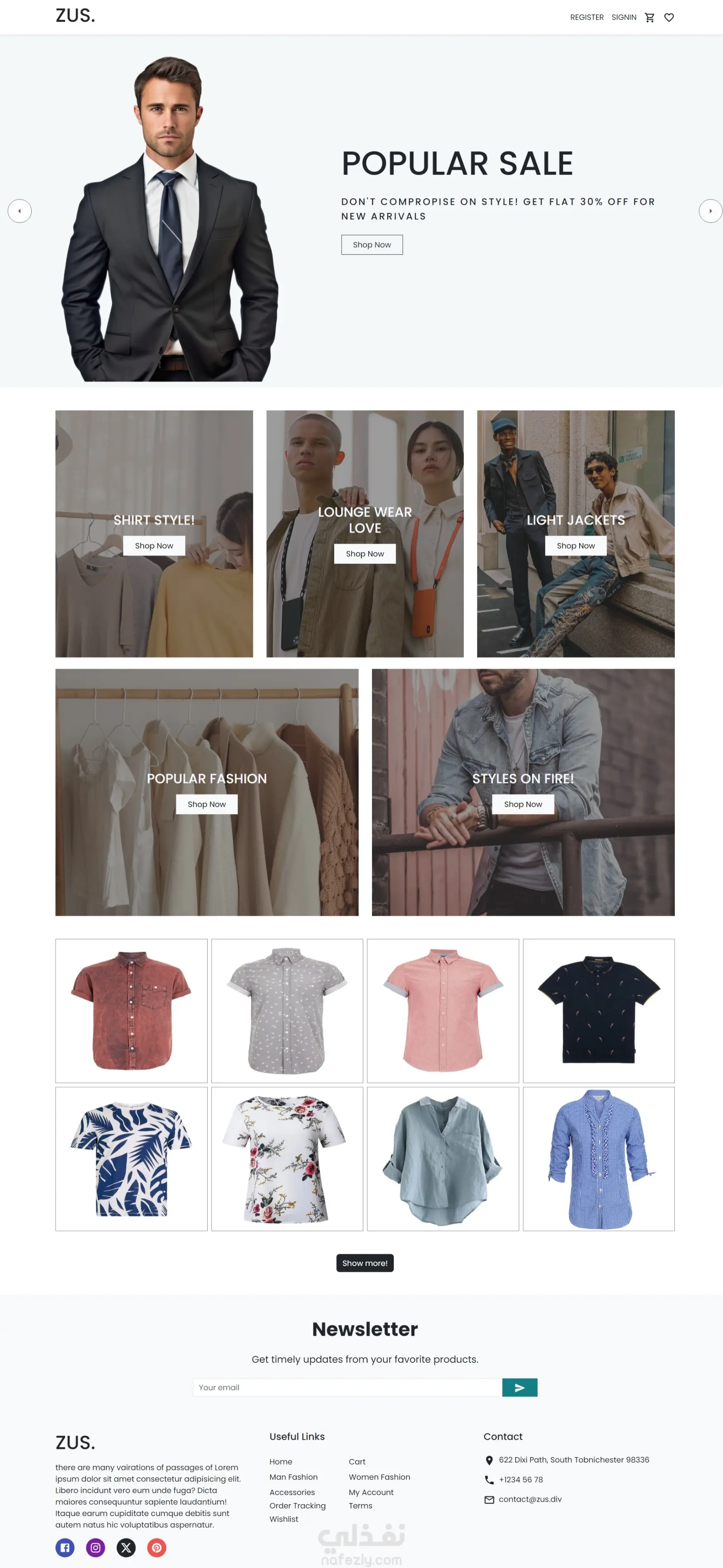 متجر الكتروني يحتوي على صور المنتجات ومحرك بحث للبحث عن منتج معين ويمكنك حفظ المنتج لقائمة المفضله او لسلة المشتريات واتمام عملية الشراء