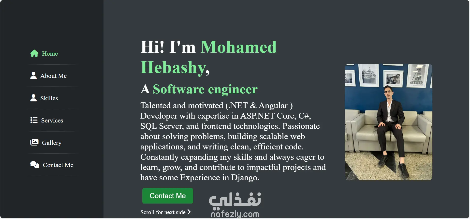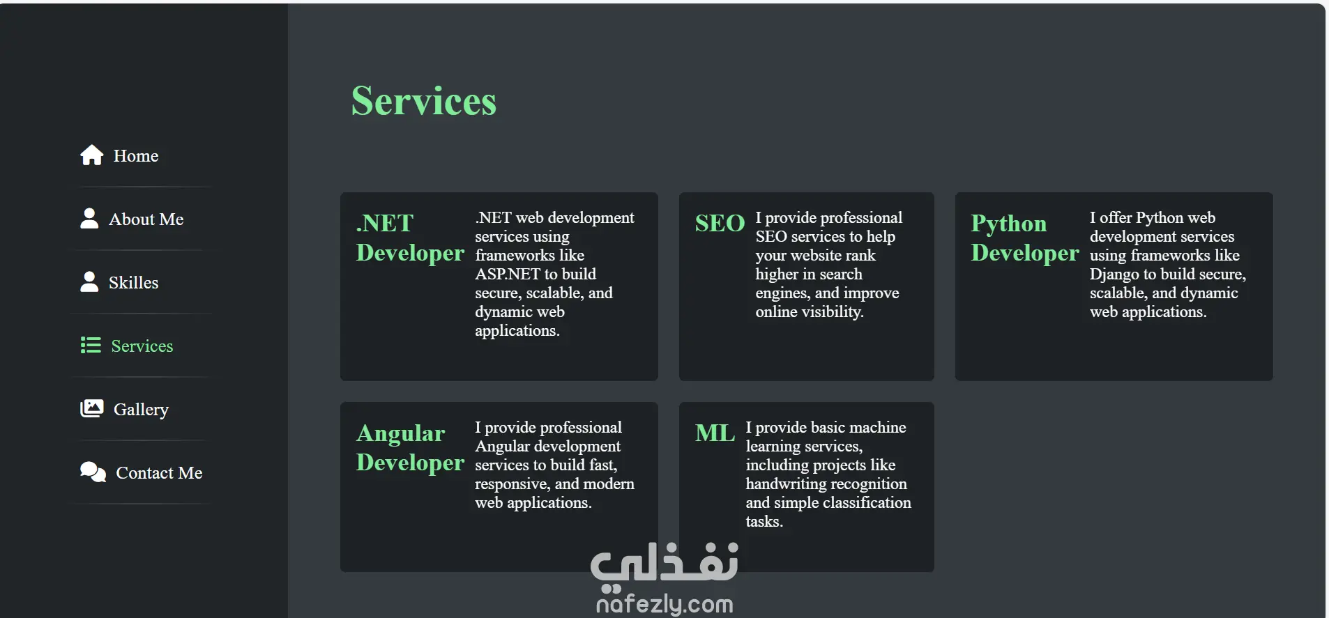 A professional and responsive portfolio showcasing skills, services, and projects, with contact information and mailing it to its owner.