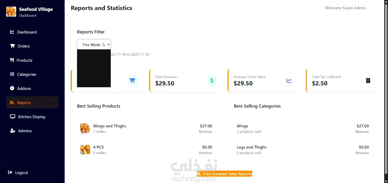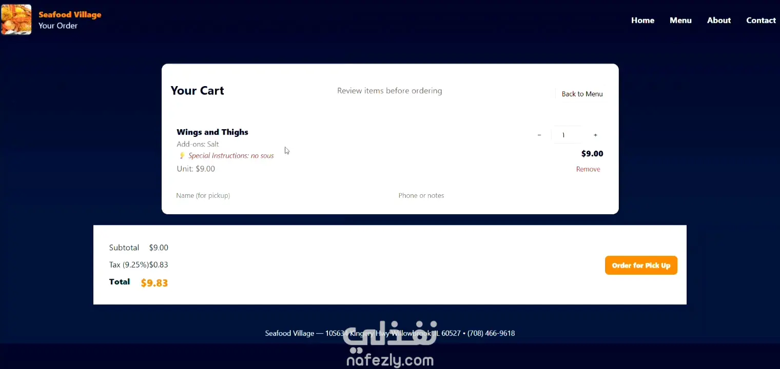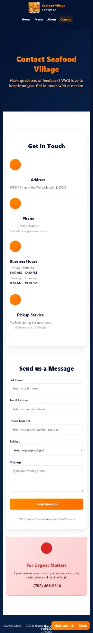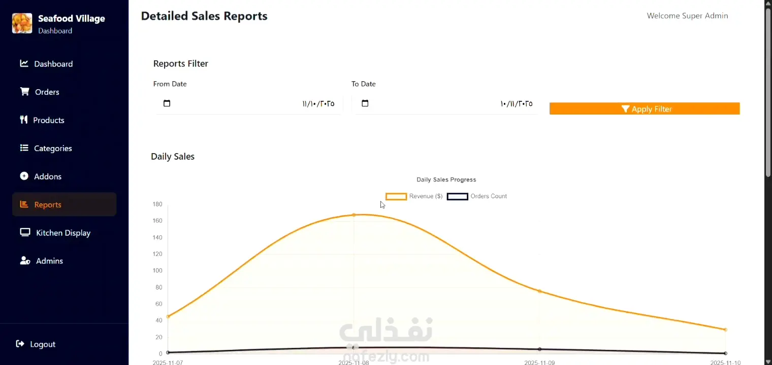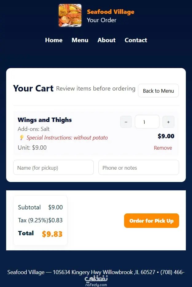 Seafood Village - نظام طلبات المطاعم المتقدم