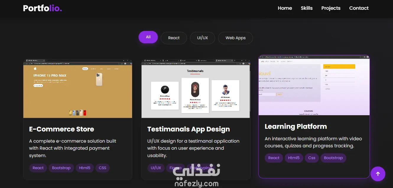 هذا البورتفوليو يضم مجموعة من أعمالي كمطور واجهات أمامية، تشمل مواقع وتطبيقات ويب تفاعلية تم تنفيذها باستخدام HTML وCSS وJavaScript وReact.js، مع التركيز على التصميم العصري وسهولة الاستخدام.