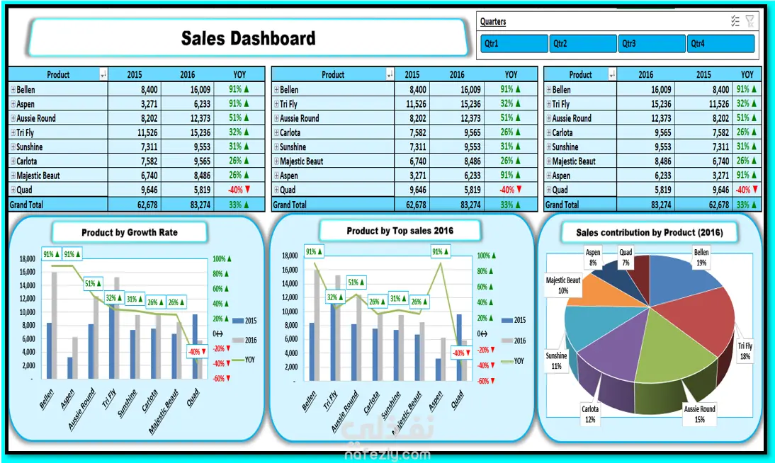 لوحه تحكم ديناميكيه للمبيعات مقارنه بالعام السابق