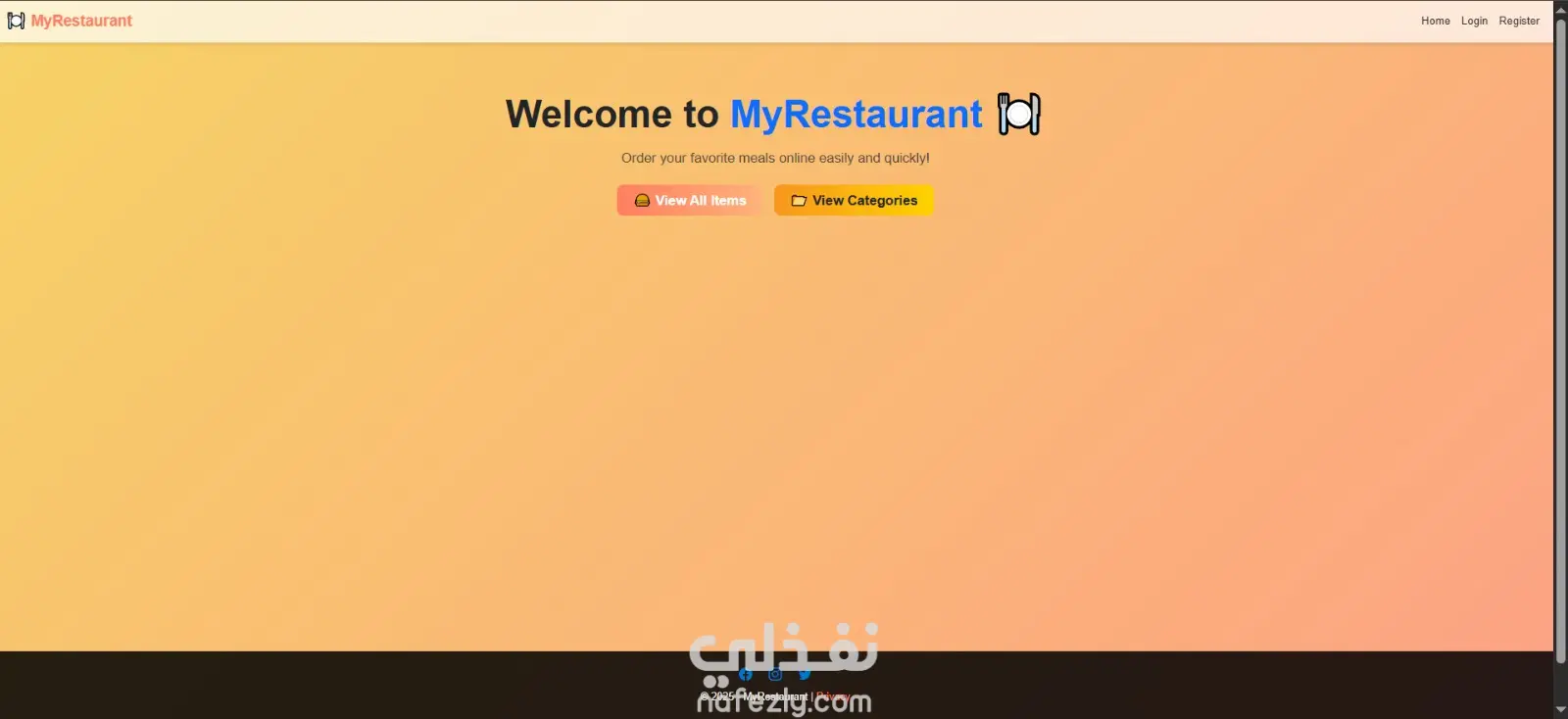 ده كان نظام إدارة مطعم بسيط معمول بـ ASP.NET MVC بهدف تنظيم عمليات الطلبات وإدارة الأصناف. النظام بيساعد صاحب المطعم إنه يضيف الأصناف، يعدلها، ويرتبها في أقسام (مشروبات – وجبات – حلويات)، وكمان يسجّل الطلبات من العملاء. بالإضافة لكده، العملاء يقدروا يعملوا أوردر بأكتر من طريقة زي: Delivery توصيل للبيت Take Away استلام من المطعم Dine In أكل داخل المطعم مع رقم ترابيزة