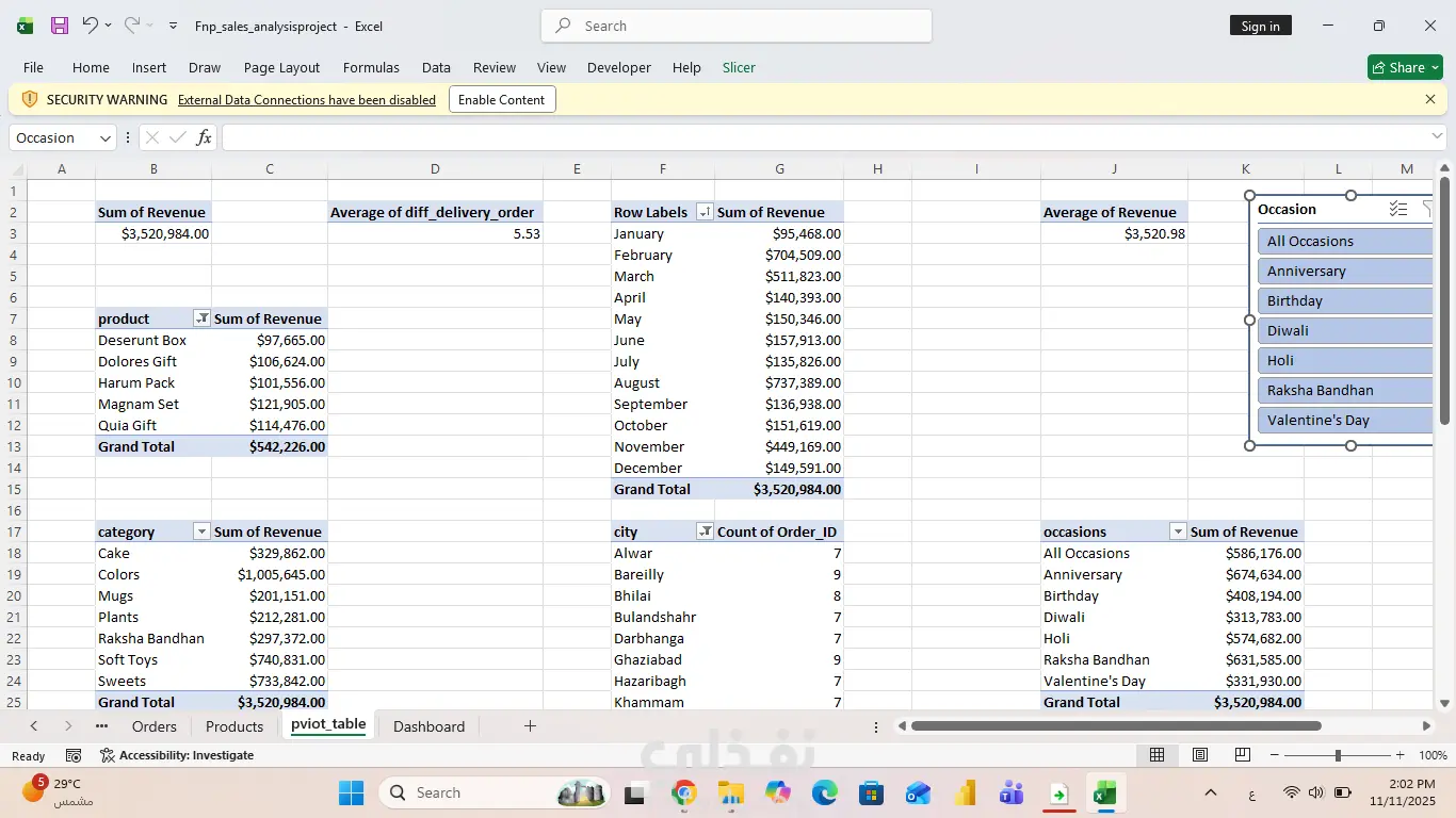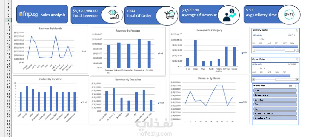قمت بتصميم وتطوير لوحة تحكم تفاعلية لتحليل المبيعات باستخدام Excel وPivot Tables.