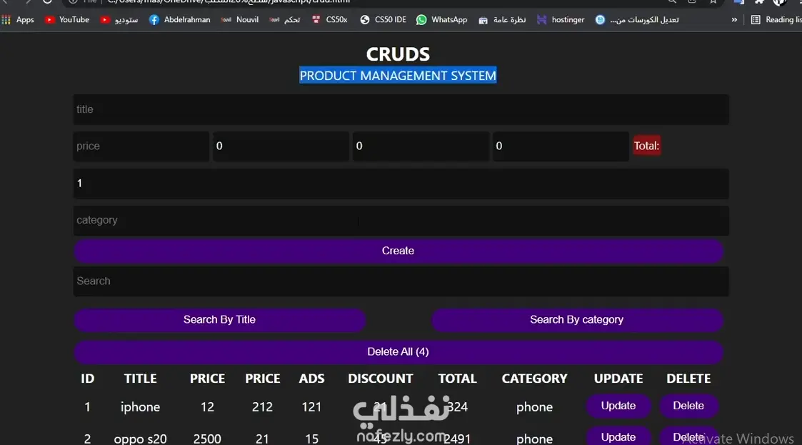 عمل cruds لاضافة و حذف المنتجات وامكانية التعديل عليها