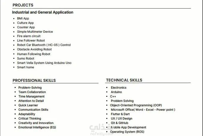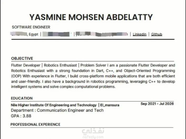أقدم خدمة تصميم سير ذاتية احترافية تساعدك على إبراز خبراتك ومهاراتك بشكل واضح وجذاب لأصحاب العمل، ومتوافقة مع أنظمة تتبع المتقدمين (ATS). الخدمة تشمل تصميم حديث ومنظم يجعل سيرتك الذاتية مميزة وجاهزة للتقديم على أي وظيفة.