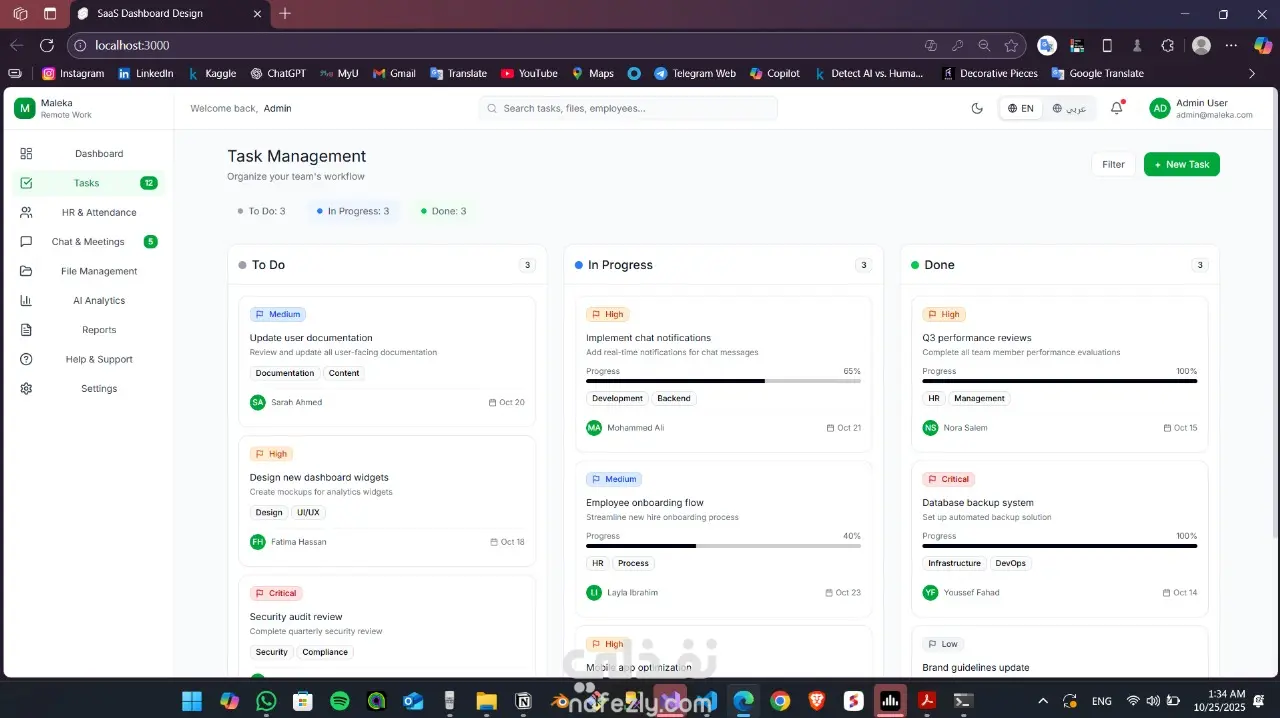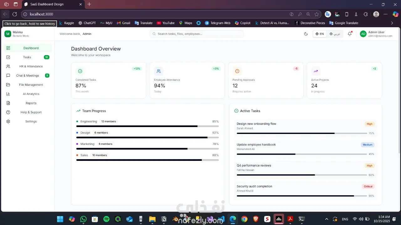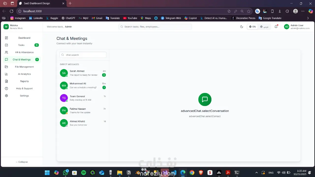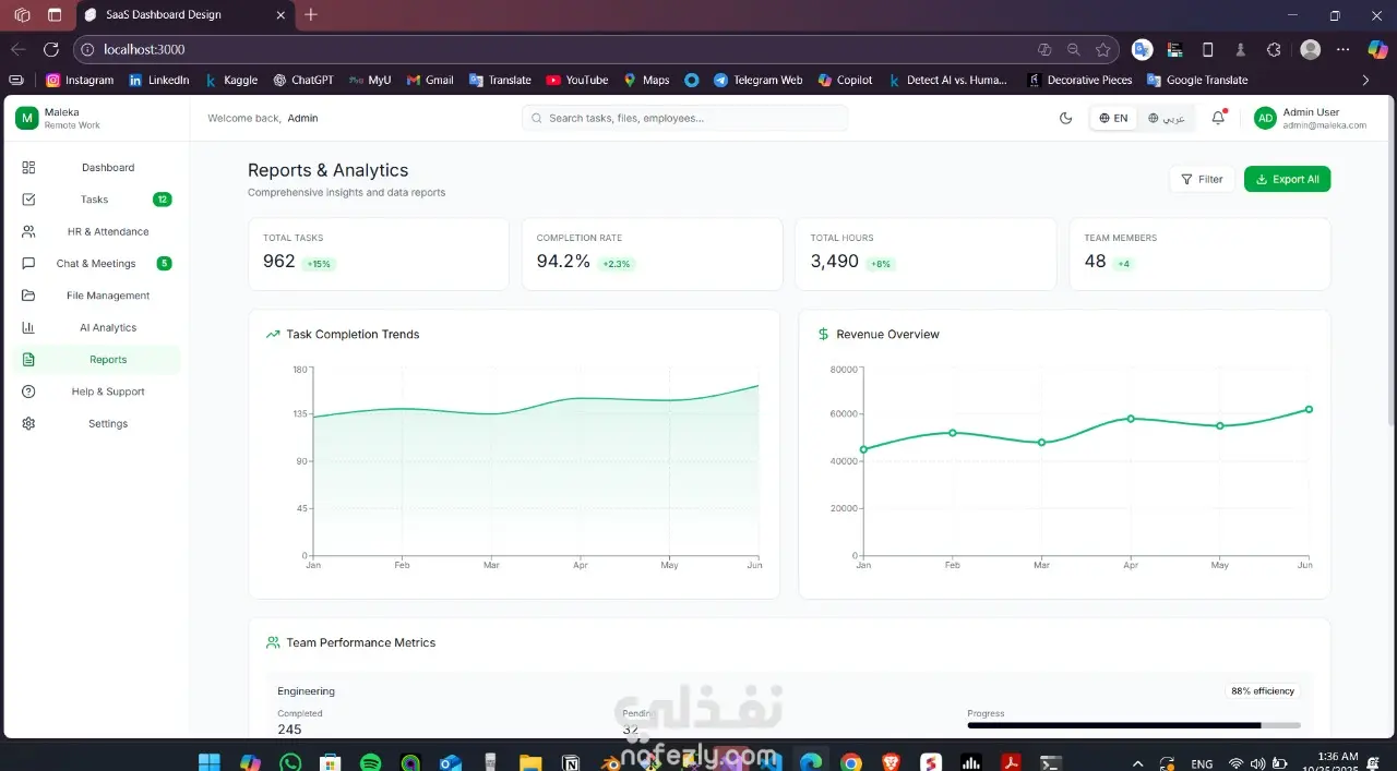 منصة عمل عن بُعد متكاملة باستخدام React و .NET Core