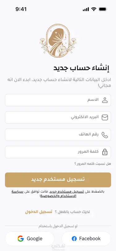 تصميم شاشات تسجيل الدخول والتسجيل (Login & Register) – Adobe XD- figma