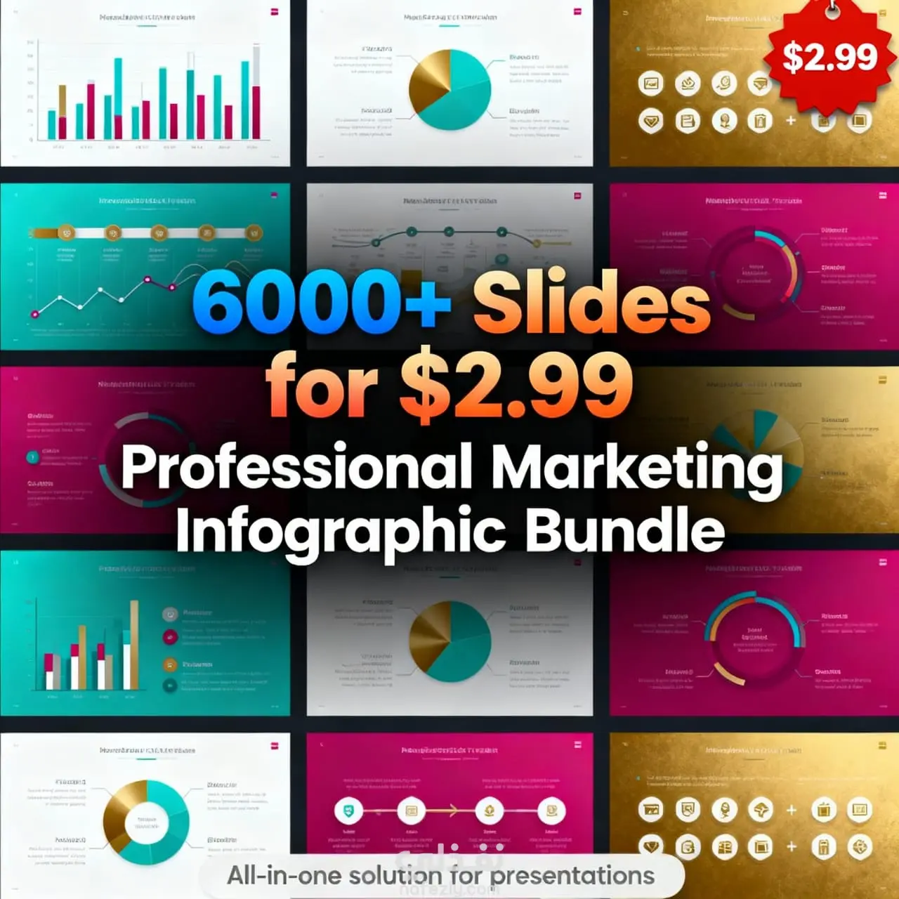 ستحصل مقابل 5 دولار فقط على 66.000 شريحة بوربوينت وانفوجرافيك يناسب مجالات كثيرة ويناسب المصممين وأصحاب الشركات وأصحاب الأعمال الذين يولدون الحصول على الكثير والكثير من العروض التي يمكن تعديلها وتخصيصها في دقائق