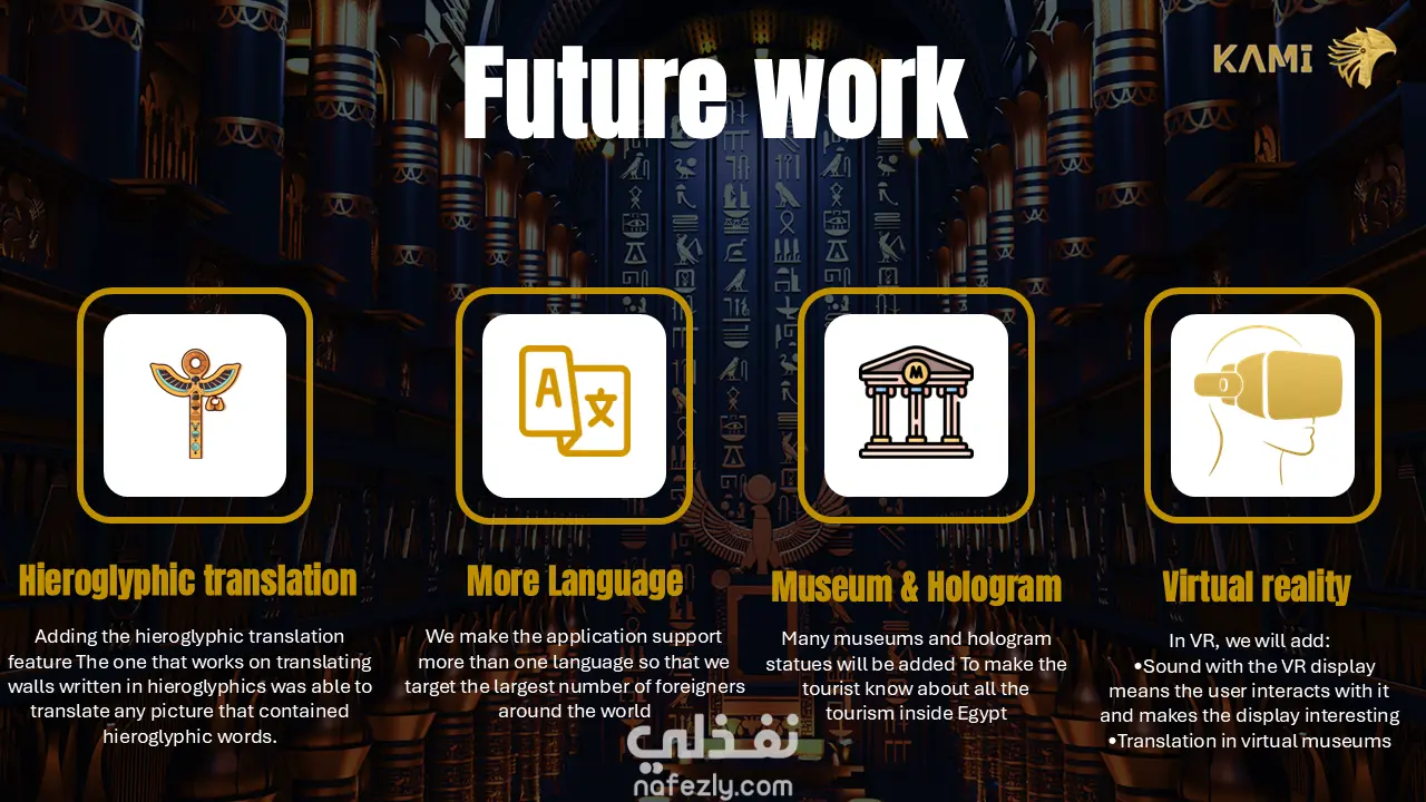 قمتُ بتصميم عرض تقديمي (PowerPoint) احترافي وجذاب لمشروع عن الواقع الافتراضي (Virtual Reality) يهدف إلى عرض المتاحف المصرية بطريقة تفاعلية وواقعية. العرض يوضح فكرة المشروع، وأهدافه في تعزيز تجربة الزائر من خلال تقنية الواقع الافتراضي، مع عرض أمثلة ورسومات توضيحية تُبرز جمال التراث المصري. استخدمت في التصميم ألوان متناسقة تعكس الطابع التاريخي للمتحف مع حركات انتقالية سلسة ورسوم أيقونية احترافية لجعل العرض أكثر تفاعلًا وجاذبية. النتيجة كانت عرضًا بصريًا مميزًا يجمع بين الإبداع التقني والطابع الثقافي المصري.