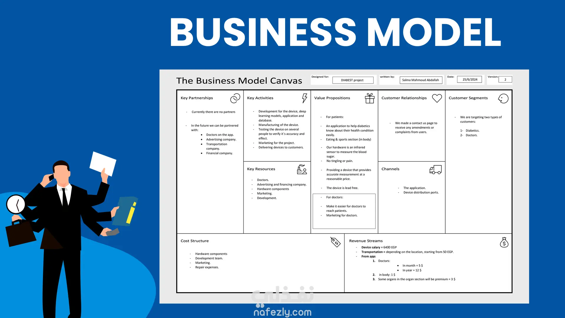 قمتُ بتصميم عرض تقديمي (PowerPoint Presentation) جذّاب واحترافي لمشروع تخرج بعنوان "جهاز استشعار لقياس نسبة السكر في الدم لمرضى السكري". العرض يوضح فكرة المشروع، وآلية عمل الجهاز الذي يعتمد على مستشعر (Sensor) لقياس مستوى الجلوكوز في الدم بدقة عالية، مع عرض المزايا، الأهداف، وخطوات التطوير بطريقة منظمة وسهلة الفهم. استخدمت في التصميم ألوان مريحة ومتناسقة مرتبطة بالمجال الطبي، مع تنسيقات احترافية للحركات (Animations) وأيقونات ورسومات توضيحية تعزز المحتوى. النتيجة كانت عرضًا تقديميًا يجذب الانتباه ويعرض الفكرة العلمية بشكل مبسط وواضح.