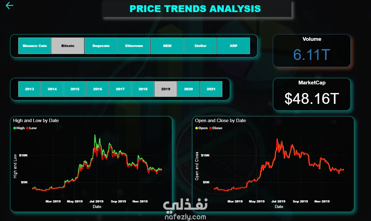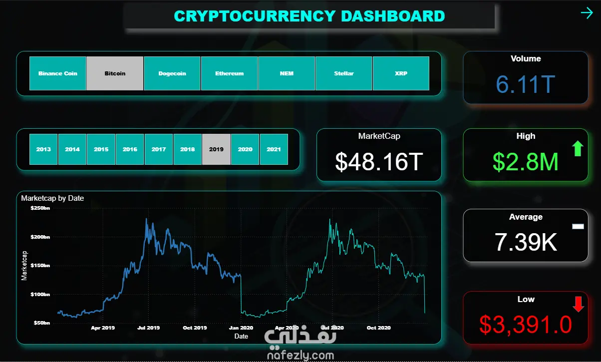 تم إنشاء لوحة معلومات تحليلية تفاعلية لمتابعة أداء العملات الرقمية باستخدام Power BI.