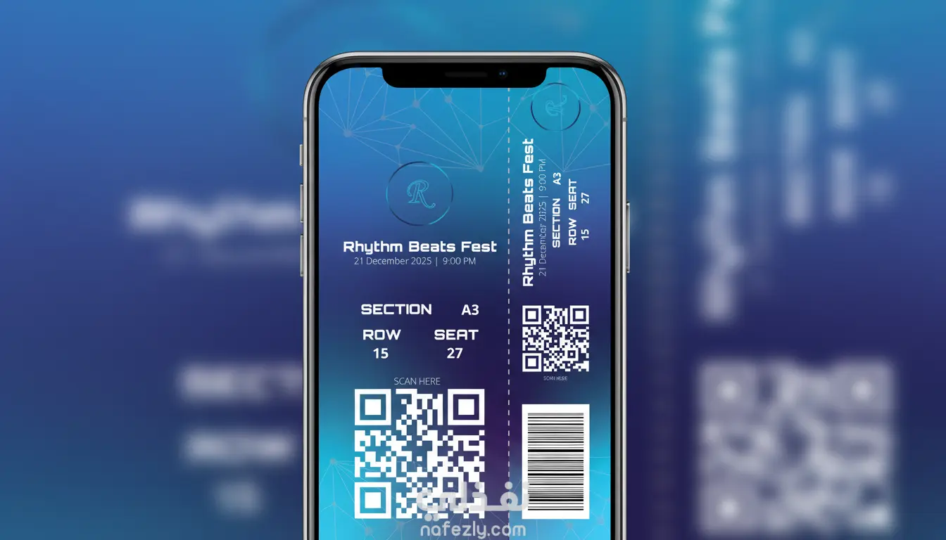 - اسم الفعالية، والتاريخ، والوقت، وتفاصيل المقاعد.