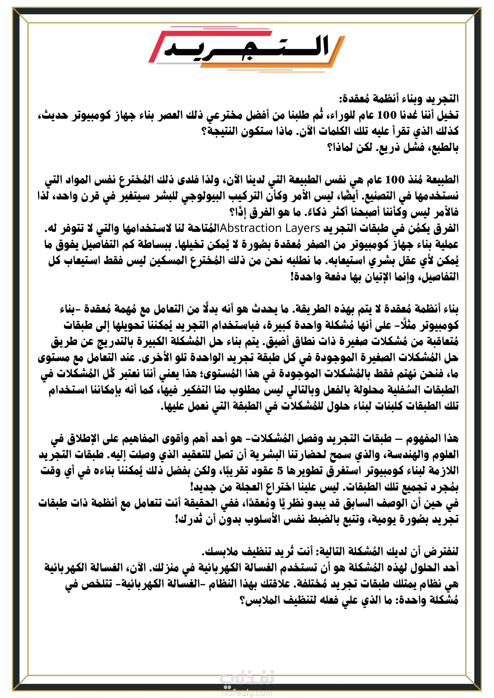 طلب مني في الجامعة بحث صفحتين عن التجريد وهذا مثال بسيط جدا للأبحاث التي استطيع إتمامها