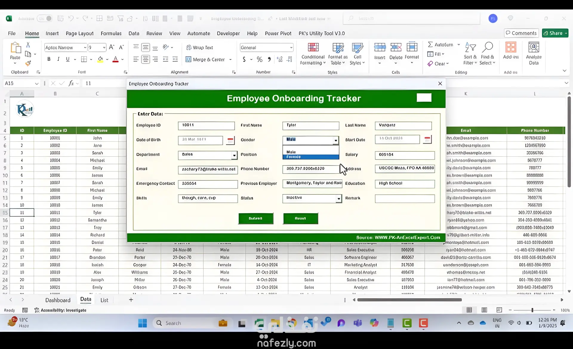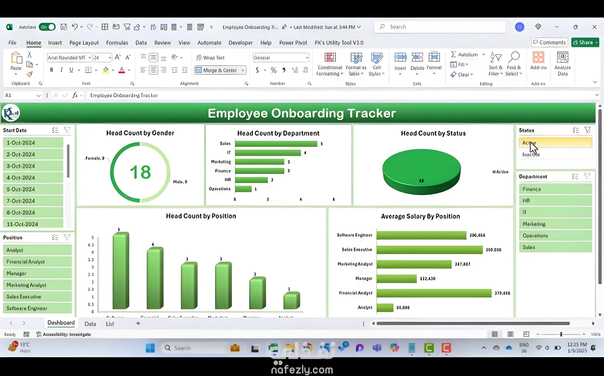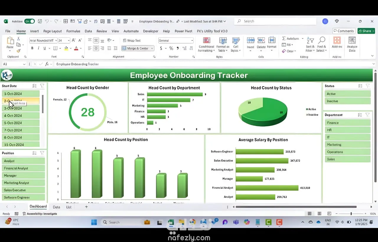 تم تصميم لوحة متابعة متكاملة لموظفي الشركة الجدد باستخدام Excel، تساعد الإدارة على تتبع جميع مراحل الانضمام لكل موظف بطريقة واضحة وسهلة الاستخدام. تحتوي اللوحة على مؤشرات رئيسية مثل: