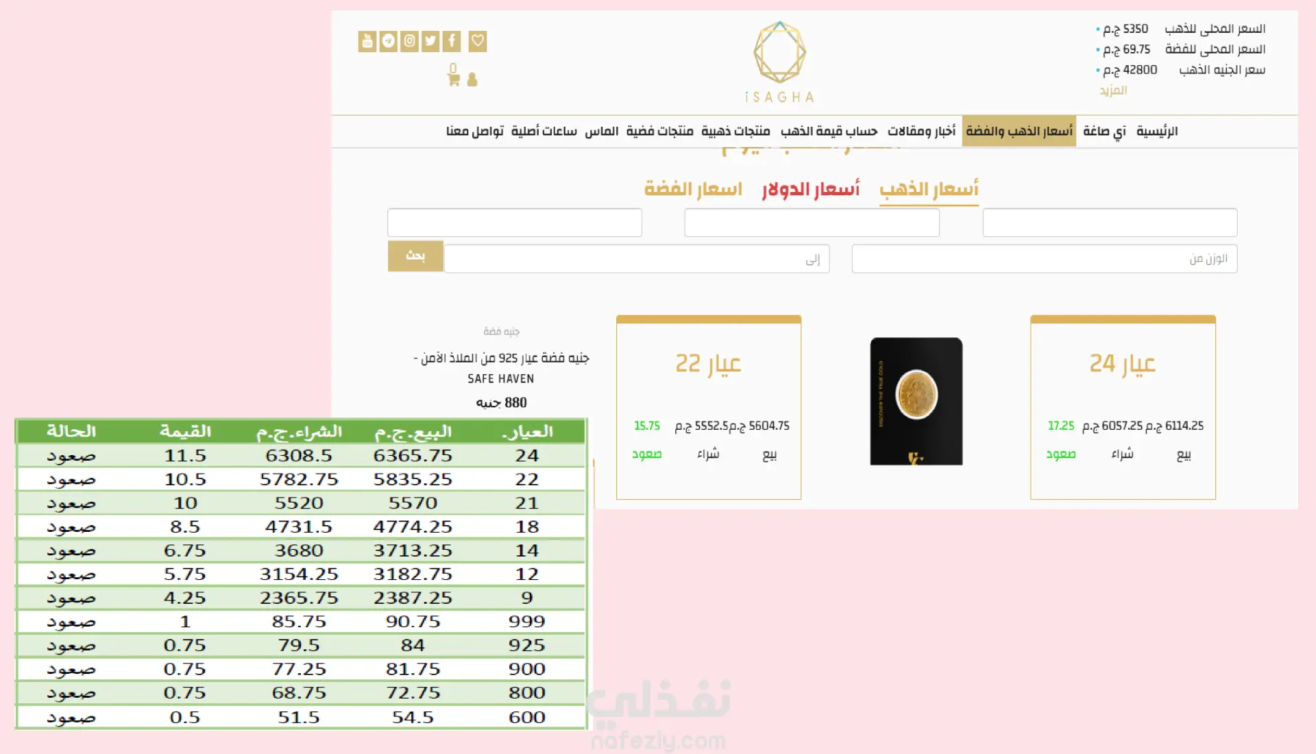 إستخراج بيانات من موقع خاص بأسعار الذهب تجميع كل العيارات سعر البيع سعر الشراء الحالة