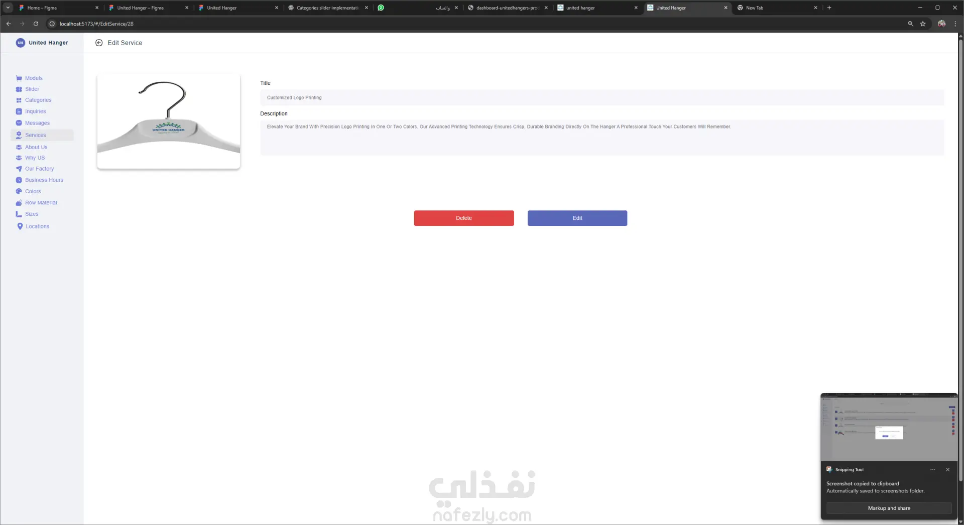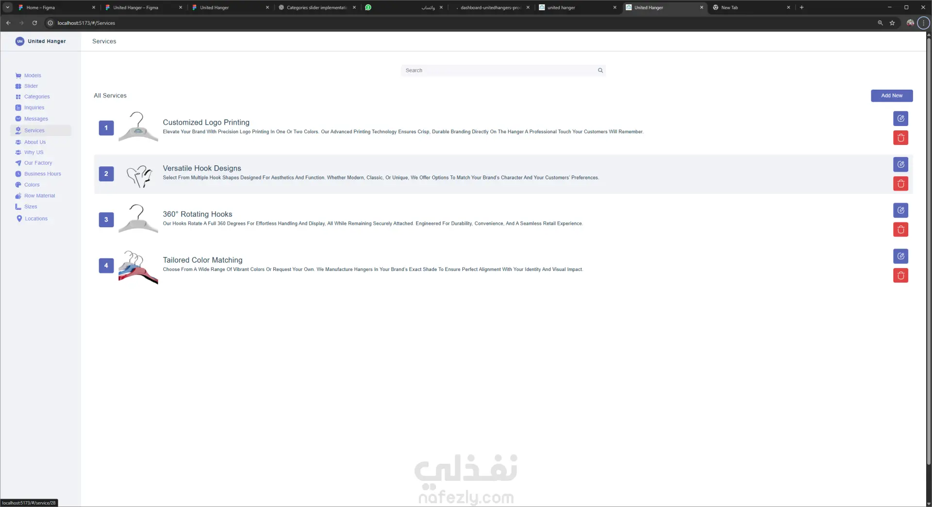 أنشأت لوحة تحكم (Dashboard) متكاملة لشركة المتحدة للشماعات لإدارة محتوى الموقع بشكل كامل. تحتوي على صفحات لإدارة الأقسام مثل (Models, Slider, Categories, Inquiries, Messages, Services, Colors, Row Material, Sizes, Locations, About Us, Why Us, Our Factory, Business Hours). تم تنفيذ جميع عمليات CRUD (إضافة – تعديل – حذف – عرض) لكل قسم، مع واجهة مستخدم احترافية وسهلة الاستخدام. المشروع مبني باستخدام React.js وCSS وتم تصميمه ليكون متجاوبًا مع جميع الأجهزة.