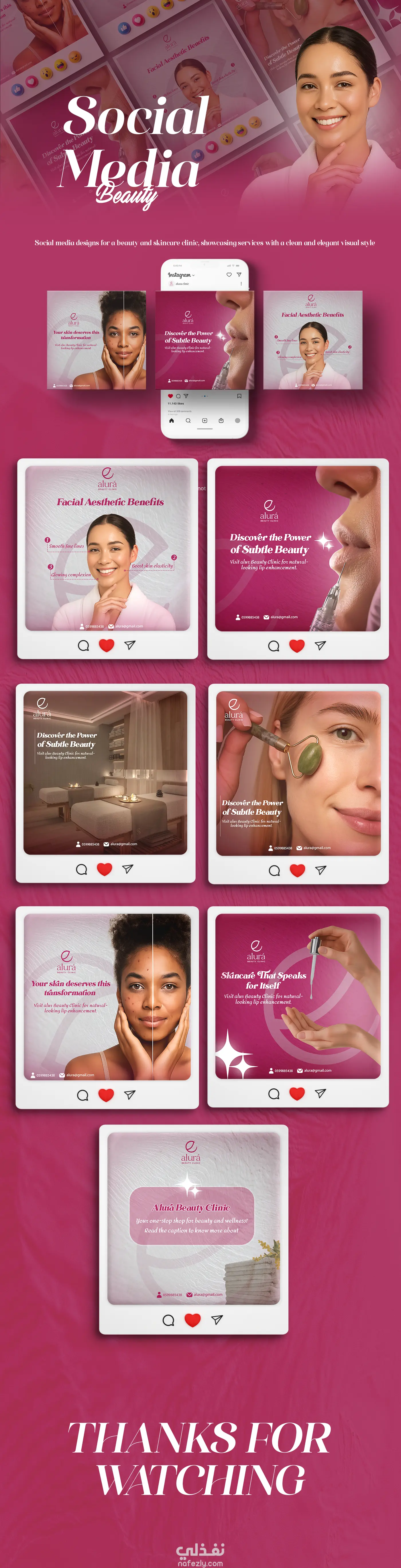الهدف من التصميم هو تقديم محتوى بصري توعوي وجذاب حول العناية بالبشرة بطريقة أنثوية وراقية ومريحة للعين، مع الحفاظ على الهوية البصرية الوردية التي تعبّر عن النعومة والثقة والجمال.