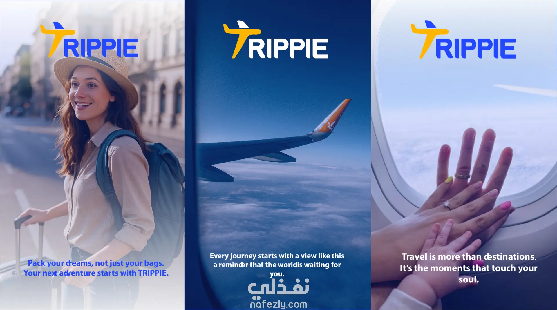 شعار TRIPPIE يجمع بين بساطة الشكل وقوة الفكرة، حيث يدمج رمز الطائرة مع الحرف الأول من الاسم ليرمز إلى الانطلاق والمغامرة. الألوان المختارة (الأصفر والأزرق) تعبّر عن الطاقة، الثقة، والحرية في كل رحلة.