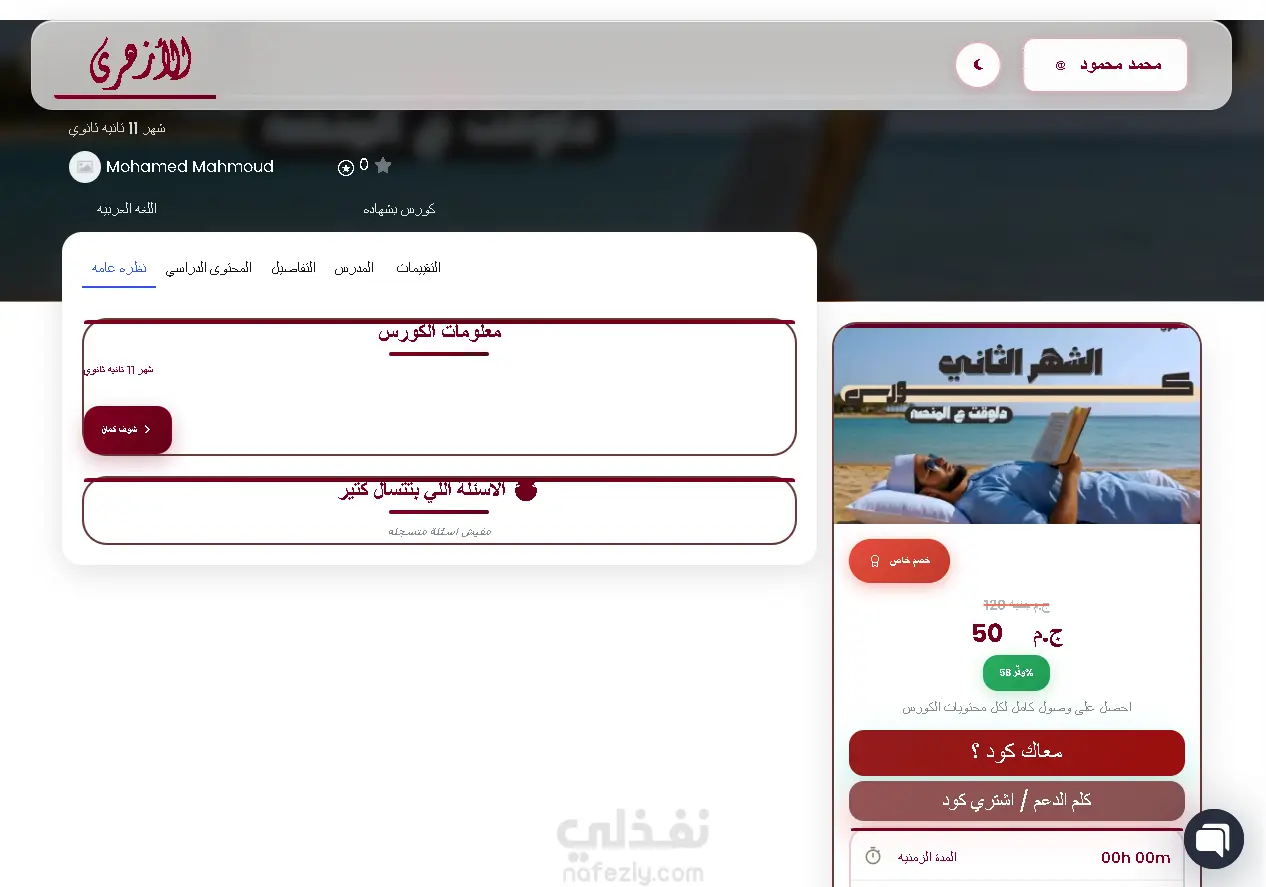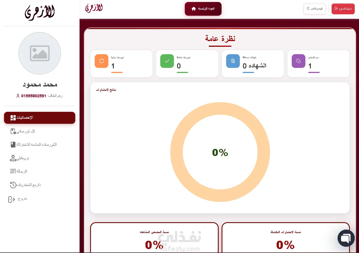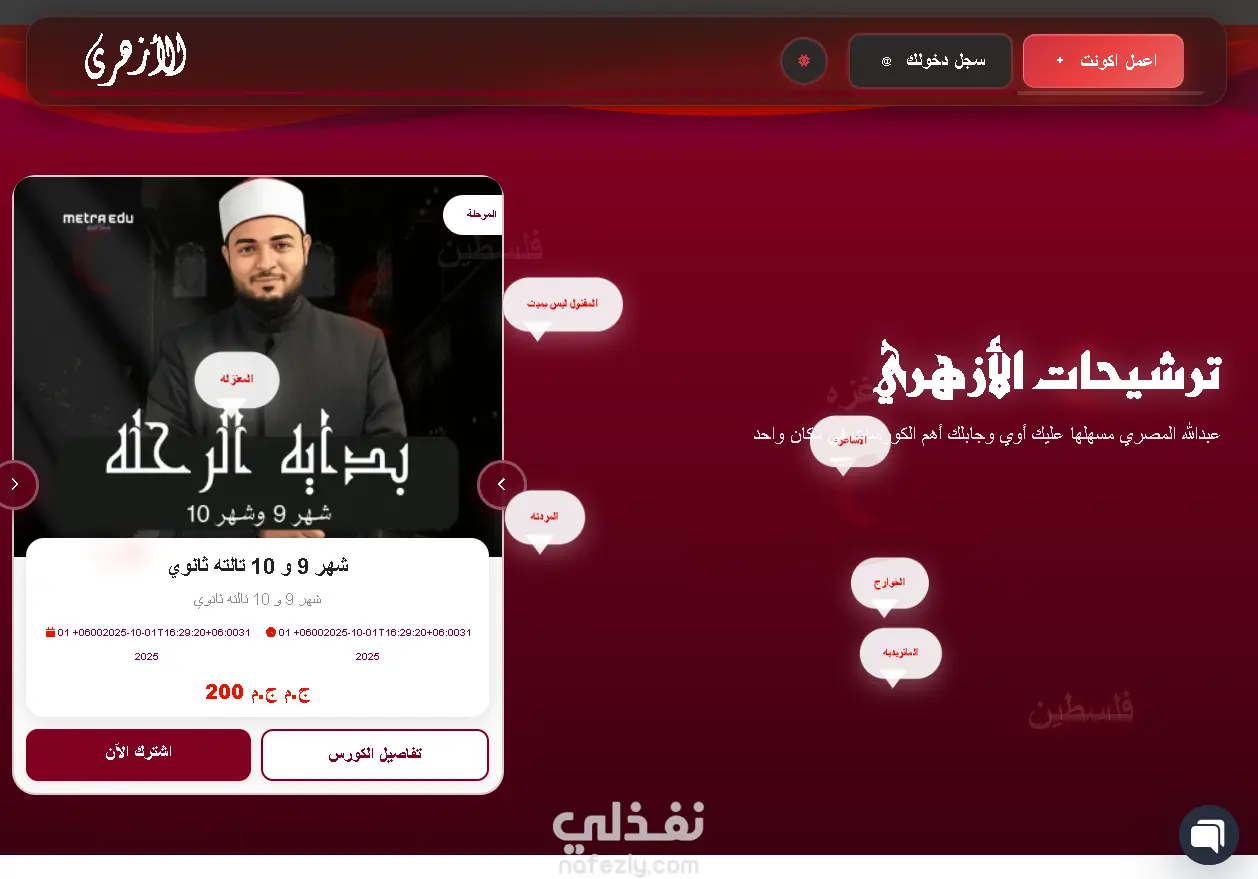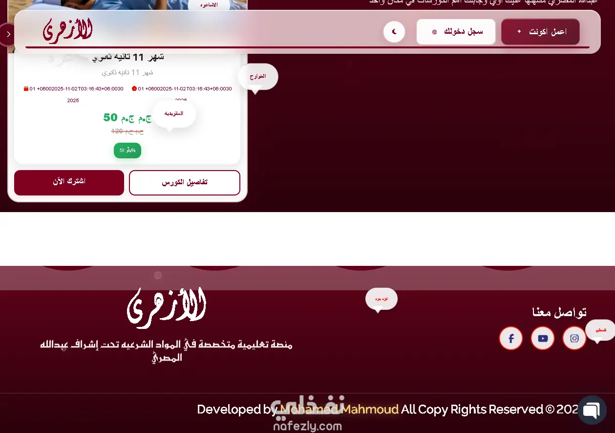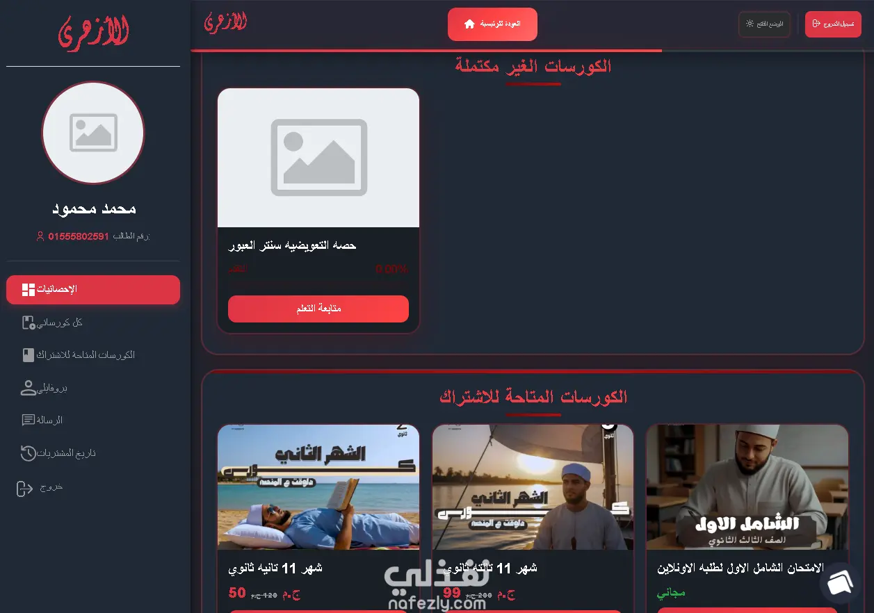 أنا طوّرت منصة تعليمية متكاملة باسم الأزهري، موجهة لطلبة الثانوية الأزهرية. المنصة بتضم نظام كورسات إلكترونية مصنّفة حسب الصفوف الدراسية (ثاني ثانوي، ثالث ثانوي…) مع قوائم واضحة للطلاب والمعلمين، وواجهة مستخدم سهلة الاستخدام.