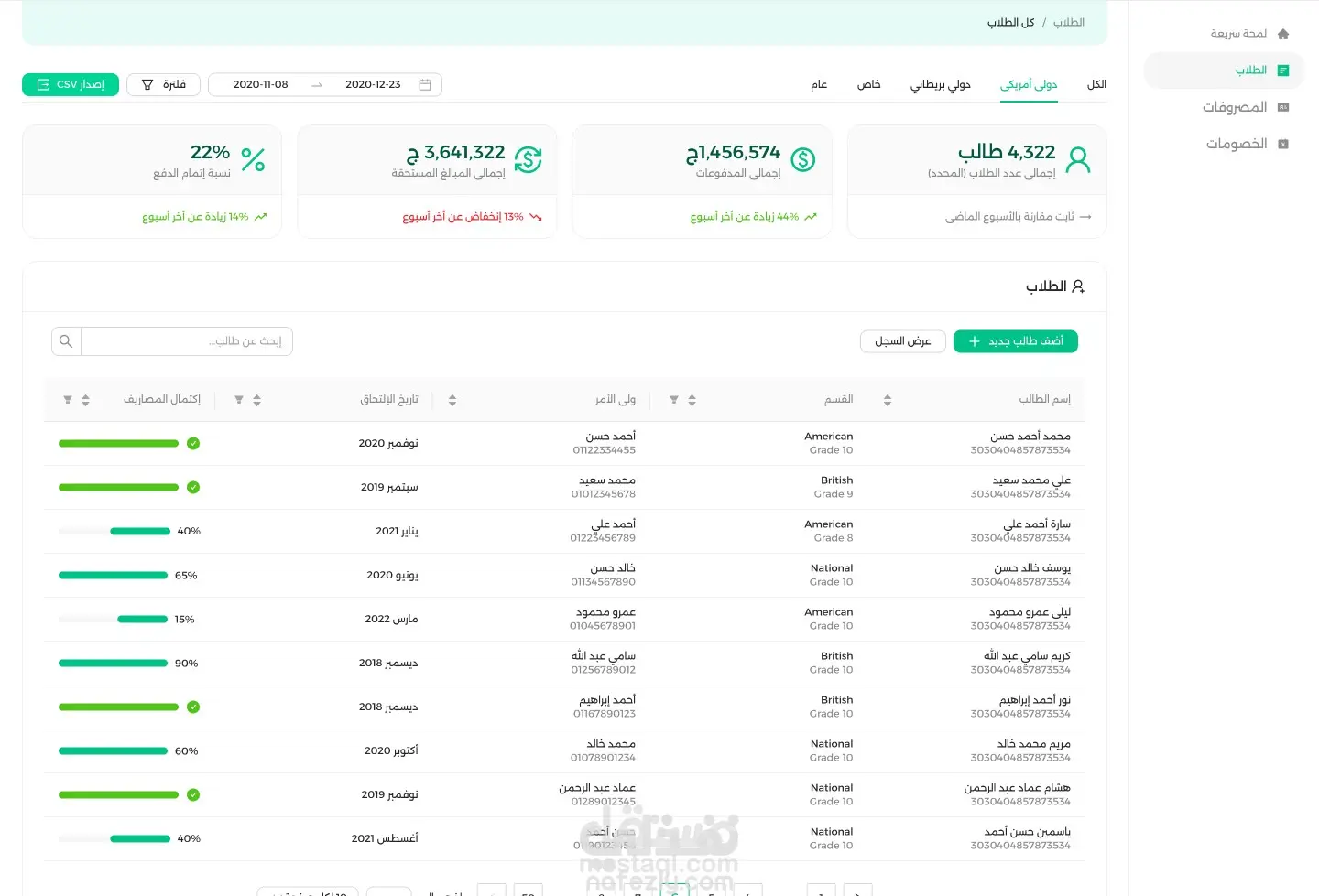 قمت بتطوير لوحة تحكم إلكترونية لإدارة مدرسة باستخدام تقنيات حديثة في تطوير الواجهة (Frontend)، لتسهيل إدارة البيانات اليومية للطلاب والمعلمين والفصول والمواد الدراسية. ? المهام والوظائف الأساسية: إدارة الطلاب: إضافة طالب جديد. تعديل بيانات الطلاب. حذف الطلاب من النظام. إدارة المعلمين: تسجيل معلم جديد. تحديث بيانات المعلمين. حذف معلم عند الحاجة. إدارة الفصول الدراسية: إنشاء فصول جديدة. ربط الطلاب والمعلمين بالفصل المناسب. تعديل أو حذف الفصول. تسجيل المواد الدراسية: إضافة مواد جديدة لكل فصل. ربط المواد بالمعلمين. ? التقنيات المستخدمة: React.js لبناء واجهات تفاعلية وسريعة. Tailwind CSS لتصميم واجهة بسيطة وعصرية وقابلة للتخصيص. React Hook Form + Zod لإنشاء نماذج إدخال مرنة، مع التحقق من صحة البيانات قبل إرسالها. TanStack Query لإدارة البيانات القادمة من الخادم (API) بكفاءة، مع دعم التخزين المؤقت والتحديث التلقائي. ️ مميزات النظام: واجهة سهلة الاستخدام تدعم المهام اليومية للمدرسة. تنظيم واضح للبيانات بين طلاب، معلمين، فصول، ومواد. إمكانية التوسع مستقبلًا لإضافة مزايا مثل التقارير أو الحضور والدرجات.