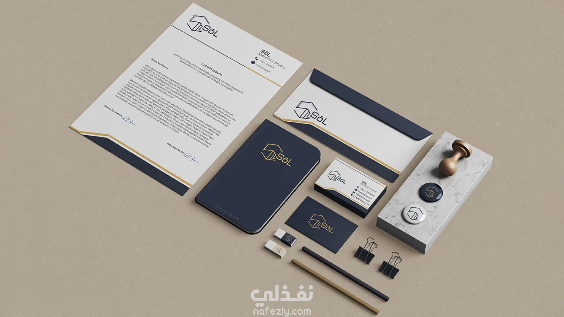الهوية صُممت لتظهر توازنًا بصريًا بين الحداثة والأناقة في جميع تطبيقاتها المطبوعة والرقمية.
