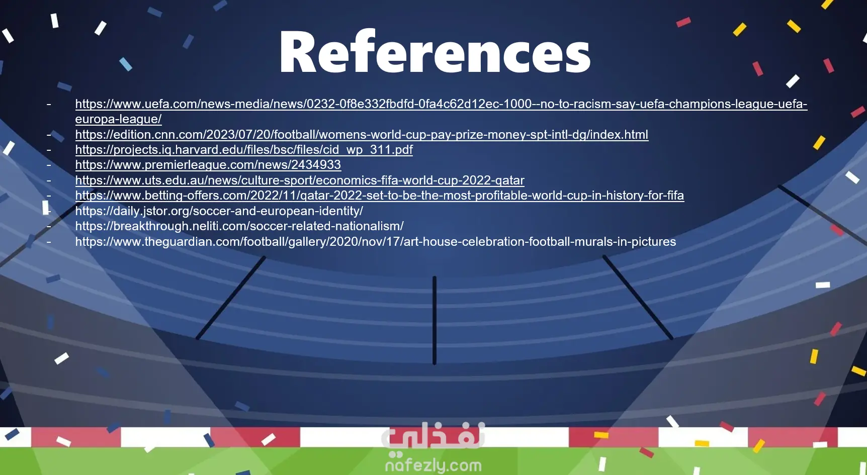 عنوان المشروع: "كرة القدم كظاهرة اجتماعية: تحليل التأثير الثقافي والمجتمعي" ملخص المشروع: توليت مسؤولية البحث وإعداد وتقديم عرض تقديمي تفاعلي وممتع للجامعة، يهدف إلى استكشاف الأبعاد العميقة لتأثير رياضة كرة القدم على النسيج المجتمعي العالمي والمحلي. المهام والمسؤوليات الرئيسية: - البحث وتطوير المحتوى: قمت بجمع وتحليل المعلومات حول كيفية تجاوز كرة القدم لكونها مجرد رياضة لتصبح قوة اجتماعية مؤثرة. - تصميم العرض: تم تصميم العرض التقديمي بطريقة جذابة بصرياً ومنطقية في سردها، لضمان إيصال الأفكار المعقدة بأسلوب "ممتع" وسهل الفهم. - التقديم والعرض: قدمت المشروع أمام جمهور أكاديمي، مع التركيز على سرد قصصي لإبراز النقاط الرئيسية. المحاور الرئيسية التي تمت تغطيتها في العرض: - الوحدة الوطنية: تحليل دور البطولات الكبرى (مثل كأس العالم) كقوة موحِّدة للشعوب، وتعزيزها للشعور بالانتماء والهوية الوطنية. - الأثر المعنوي للفوز: استعراض كيف يؤثر فوز دولة ما ببطولة قارية أو عالمية بشكل إيجابي ومباشر على الحالة المعنوية العامة للشعب. - التأثير على الثقافة الشعبية: رصد بصمات كرة القدم الواضحة على ثقافة الشارع، وتأثيرها على اتجاهات الموضة والفنون الجدارية (الغرافيتي) والموسيقى. - محاربة العنصرية: تسليط الضوء على المبادرات والحملات التي قادتها منظومة كرة القدم لإدانة العنصرية بشكل فعال، ودورها كمنصة عالمية لنشر رسائل التسامح. الهدف من المشروع: البرهنة على أن كرة القدم هي أداة تغيير اجتماعي قوية، لها تأثير ملموس يتجاوز حدود الملعب ليلامس الثقافة، الفن، وحتى السياسة الاجتماعية.